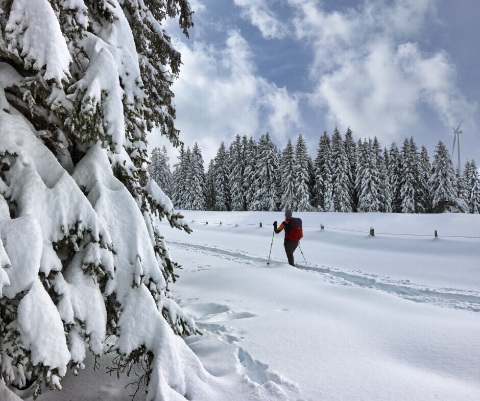 Wir starten beim Gasthaus Rehbockhütte und wandern in Richtung Osten zur Freiländer-Alm. Bei der Freiländerhütte gehen wir links vorbei, bis wir den Waldrand und kurz darauf die Kreuzung der Wanderwege 35 und 551 erreichen. Wir orientieren uns an den gelben Wegweisern in Richtung Reinischkogel und gehen weiter geradeaus. Nach wenigen Höhenmetern bergab verlassen wir den markierten Wanderweg und folgen der Forststraße, die eine scharfe Rechtskurve macht. Bei einer großen Lichtung, östlich des Schwarzkogels (1550 m), sind wieder rot-weiß-rote Markierungen zu sehen. Wir gehen in Richtung Windpark und kommen rechts bei einem Windrad vorbei – Vorsicht bei Eiswurf! Nach kurzer Zeit verlassen wir die Straße und gehen rechts entlang des Wanderweges durch die beeindruckende Landschaft des Filzmooses, bis wir die Hütten der Freiländer-Alm erreichen. Der Rückweg führt an der Freiländerhütte vorbei, auf der uns bereits bekannten Wegstrecke bis zum Ausgangspunkt der Wanderung.
