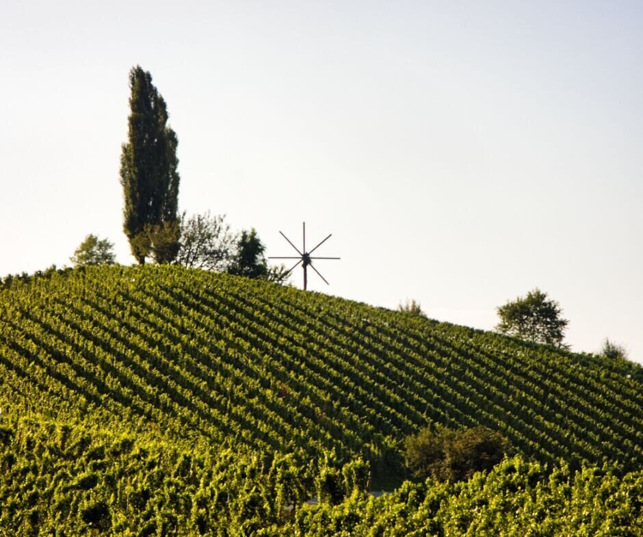 Die Herzerlstraße an der Grenze zwischen der Steiermark und Slowenien ist ein beliebtes Fotomotiv und Ausflugsziel. Nur von einem bestimmten Blickwinkeln offenbart die, an sich kleine Straße auf einem slowenischen Weinberg, ihre „Herzform„.
