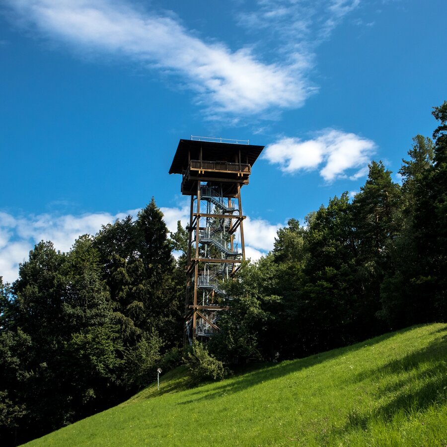 Von Leutschach geht es zunächst Richtung Norden leicht bergauf aus dem Ort hinausführend und in Folge den Eichbergbach entlang Richtung Kreuzberg, wo eine der schönsten Aussichtswarten der Region steht. Ein kurzer Abstecher zur Aussichtswarte, die nicht direkt auf der Route liegt, lohnt sich auf jeden Fall. Knapp vor der Aussichtswarte im Bereich der Siedlung Reitermacher macht unser Wanderweg einen Schwenk nach rechts Richtung Osten um alsbald zu den Weingütern Adam und Adam-Lieleg zu kommen. Hier halten wir uns links um wieder weiter Richtung Norden durch angenehm Schatten spendende Wälder und zu Weingütern wie jenem von Peter Skoff, der Familie Trabos oder jenem von Hannes Sabathi zu gelangen, das nur wenige Meter abseits der Tour liegt.