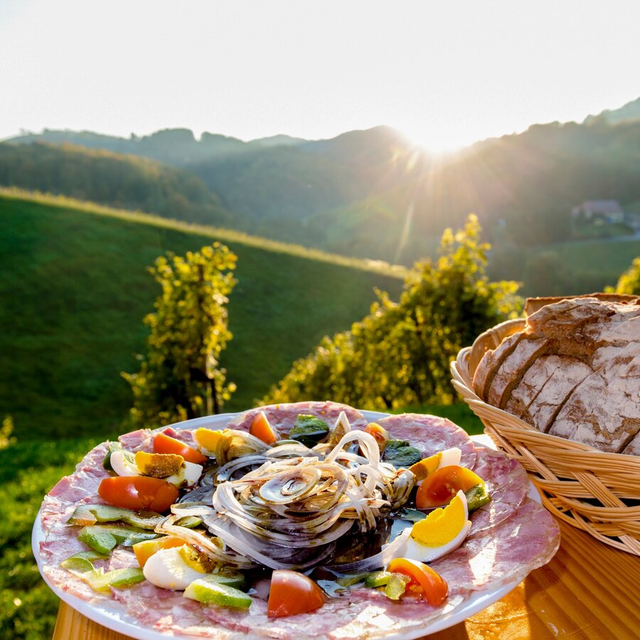 Der Naturpark Südsteiermark zählt zu den landschaftlich schönsten Weinbaugebieten Europas. Jedoch nicht nur der Wein hat es allen Besuchern wie auch den Einheimischen angetan, sondern auch unzählige weitere kulinarische Produkte, die hier in höchster Qualität angebaut und geerntet werden. Bei derart vielen Köstlichkeiten ist natürlich eine Wanderung durch diese bezaubernde Landschaft die passende Alternative. Wenn wir diese Variante der Wanderroute "Vom Gletscher zum Wein" von Leutschach nach Leibnitz mit den Etappen 23, 24 und 25 der Hauptroute zu einer Rundtour verbinden, lernen wir die Südsteiernark in all ihren Facetten von ihren schönsten Seiten kennen und lieben.