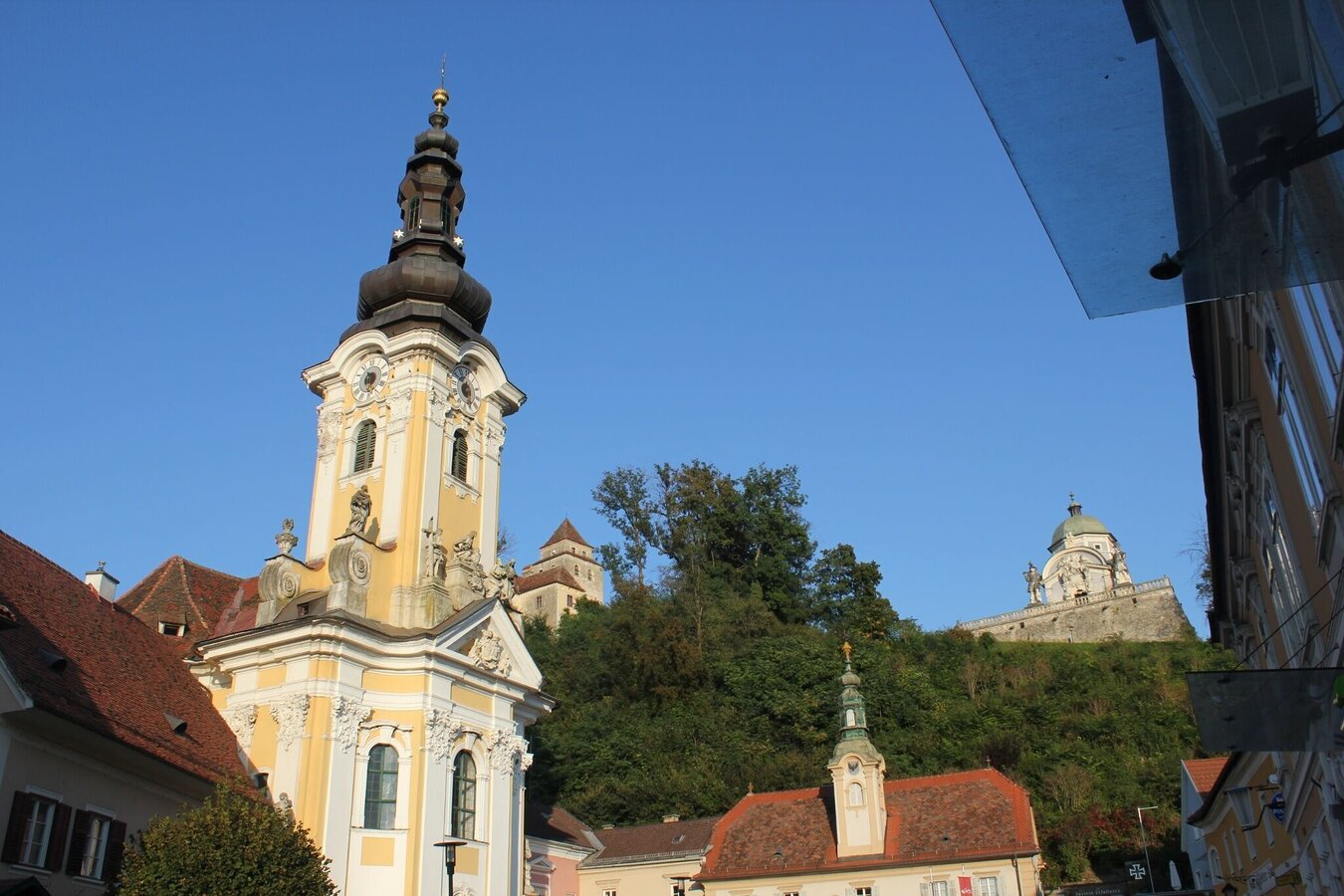 Der Blick von der Weinleitenstraße auf das Mausoleum Ehrenhausen ist einmalig!