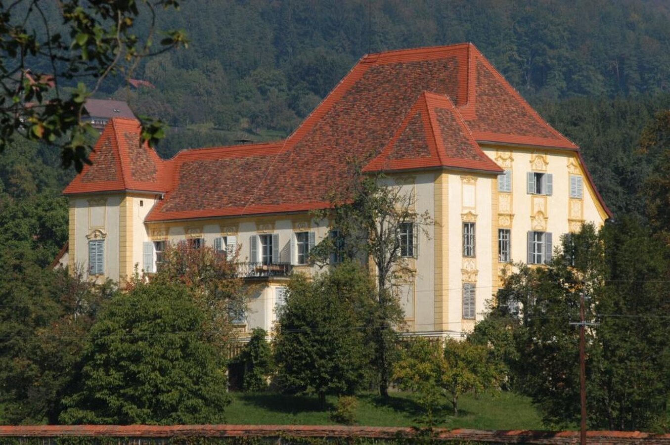 Schloss, Wein und Gemeinde erhielten vom Bach ihren Namen. Der Wildbach wurde noch bis ins späte 19. Jh. auch Laß-nitz, Hohe Laßnitz oder Klein Lasnitz genannt, wobei der Name Laßnitz aus dem Slawischen und damit aus einer viel früheren Zeit stammt. In diesem Gebiet bauten bereits die Römer Wein an. Die Wildbacher Rebe hingegen ist ein keltischer Wein, der sogar das grosse Weinsterben durch die Reblaus überstand. Der daraus gewonnene Schilcher Wein zählt zum bekanntesten Wein, den die Steiermark anzubieten hat.