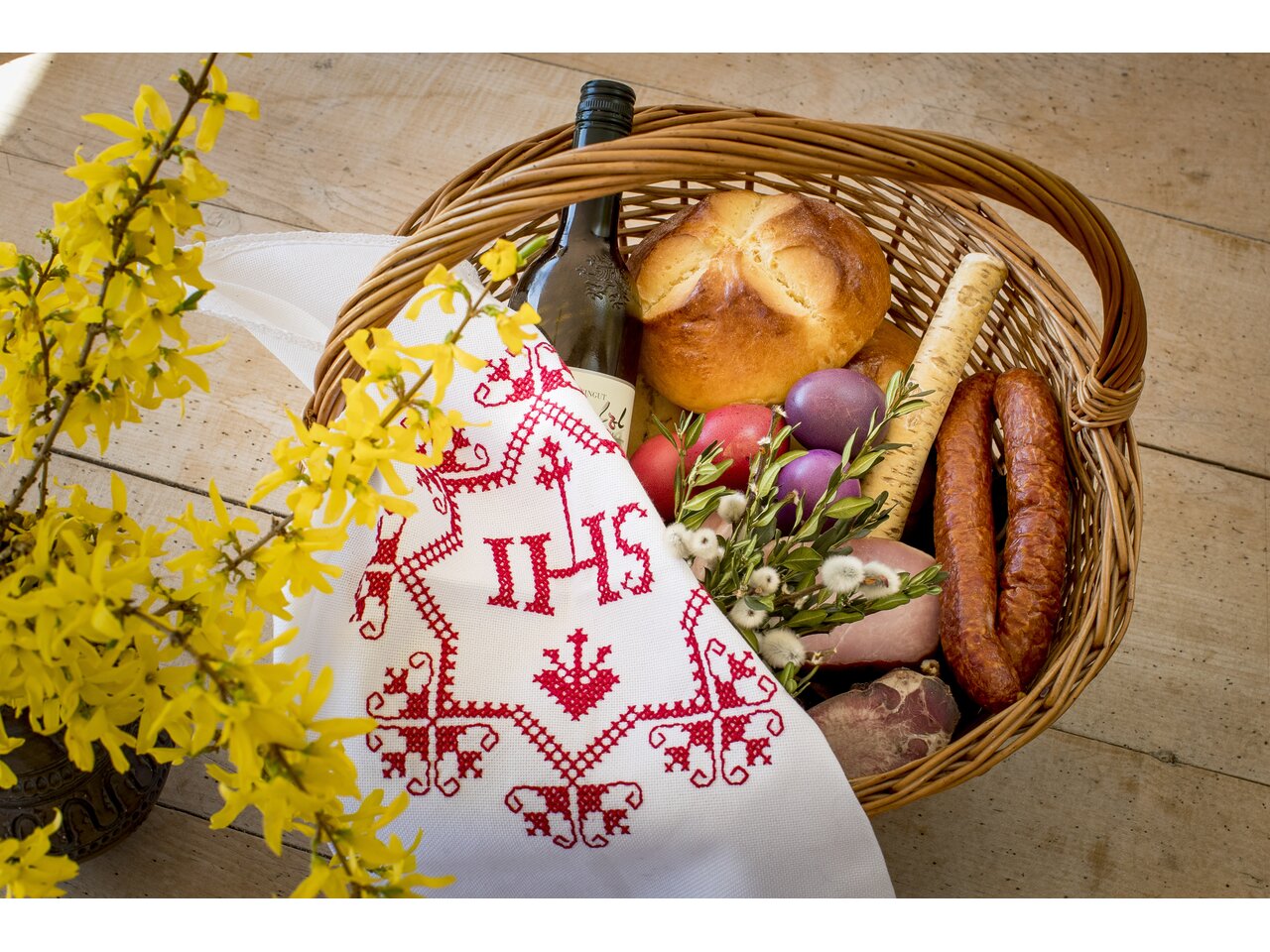 Zu Ostern gehört eine traditionelle Osterjause einfach dazu – mit G´selchtem, frischem Kren, bunten Eiern und einem Glas Wein. Wer die Osterwoche kulinarisch einleiten möchte oder noch einige Zutaten für die Osterjause benötigt, wird in den Genussgreißlereien, Hofläden und Bauernmärkten sowie den Winzer:innen und Vinotheken im Thermen- & Vulkanland fündig.