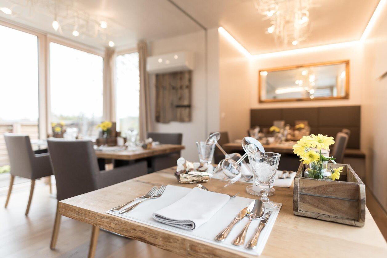 „Perfekt für den Hochzeitstag“, wurde mir gesagt. Und weil unser Hochzeitstag zugleich der Geburtstag meiner Frau ist und nicht mehr fern war, habe ich spontan reserviert. Mit dieser Reservierung gehörte an diesem Abend das ganze Restaurant uns, wir waren sozusagen alleine zu zweit. In einem Raum mit exakt 3 m², einem Tisch mit zwei Sesseln, Kerzen, einer liebevollen Dekoration, perfekter, leiser Hintergrundmusik – und einem sensationellen Ausblick! Durch das große Fenster sieht man über die Weingärten bis zum Stradner Kogel. Alleine dieser Blick zeigt, in welch fantastischer Natur wir leben, und wirkt an diesem Abend neben allen anderen Eindrücken so beruhigend. Oder wie es meine Frau sagte: „Hier kann ich total herunterkommen.“ Als ich ihr von meiner Reservierung erzählt habe, war das noch anders. Sie hatte irgendwie ein mulmiges Gefühl, dass wir die einzigen Gäste sein sollten und sich alles um uns dreht.