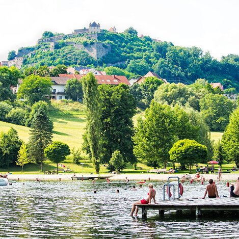 Erholung und Abkühlung suchen und dabei stets ein Schloss im Auge haben? Dann sind Sie im Schlossbad Burgau richtig, wo es neben einem Naturteich auch ein Sport-, Nichtschwimmer- und Kinderbecken gibt. Und wer Badespaß mit Top-Stimmung verbringen möchte, ist hier am 1. August-Wochenende richtig, wenn das beliebte Burgauer Strandfest bereits zum 81. Mal stattfinden wird.