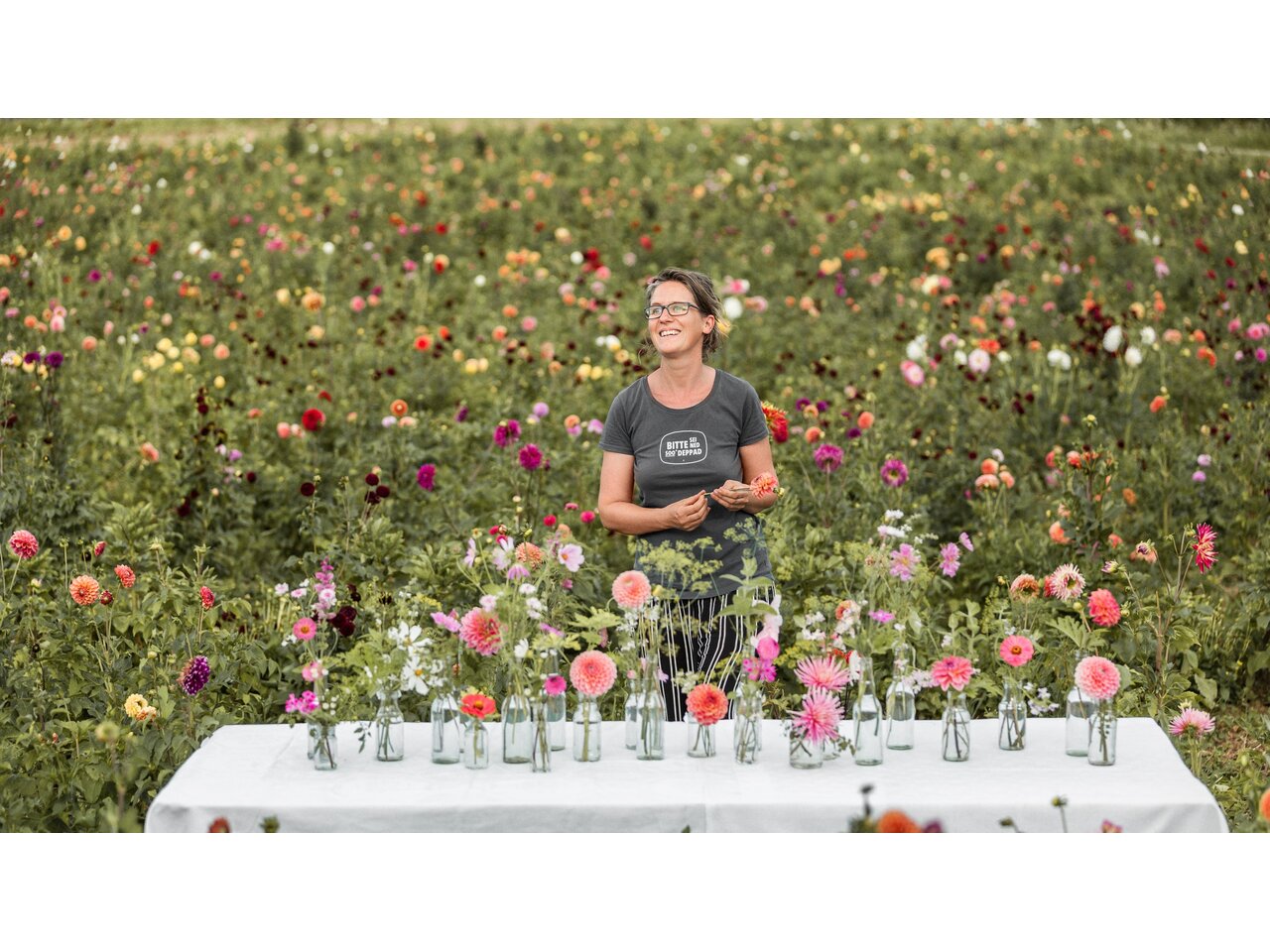 Stolz berichtet Margrit "Schritt für Schritt haben wir Erdhaufen in Baustellen und mehr als einen Hektar konventionellen Maisanbau in einen BIO-Blumenacker verwandelt. Heute kultivieren wir Bioschnittblumen, Kräuter, essbare Blüten und Gemüseraritäten." Ihre Liebe zu Blumen und Gestaltung gibt sie in Workshops weiter, die schon seit langer Zeit einen festen Platz in ihrem Engagement haben. Seit 2017 lädt das Garten Café dazu ein, das Konzept kulinarisch zu erleben: Essbare Blüten, Gemüseraritäten, alte Sorten und süße Verlockungen werden immer saisonal und mit viel Liebe zum Detail präsentiert.