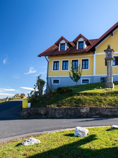 Buschenschank mit Hausspezialitäten aus eigener Erzeugung an der steirisch-burgenländischen Grenze in Sichauf bei St. Anna am Aigen.