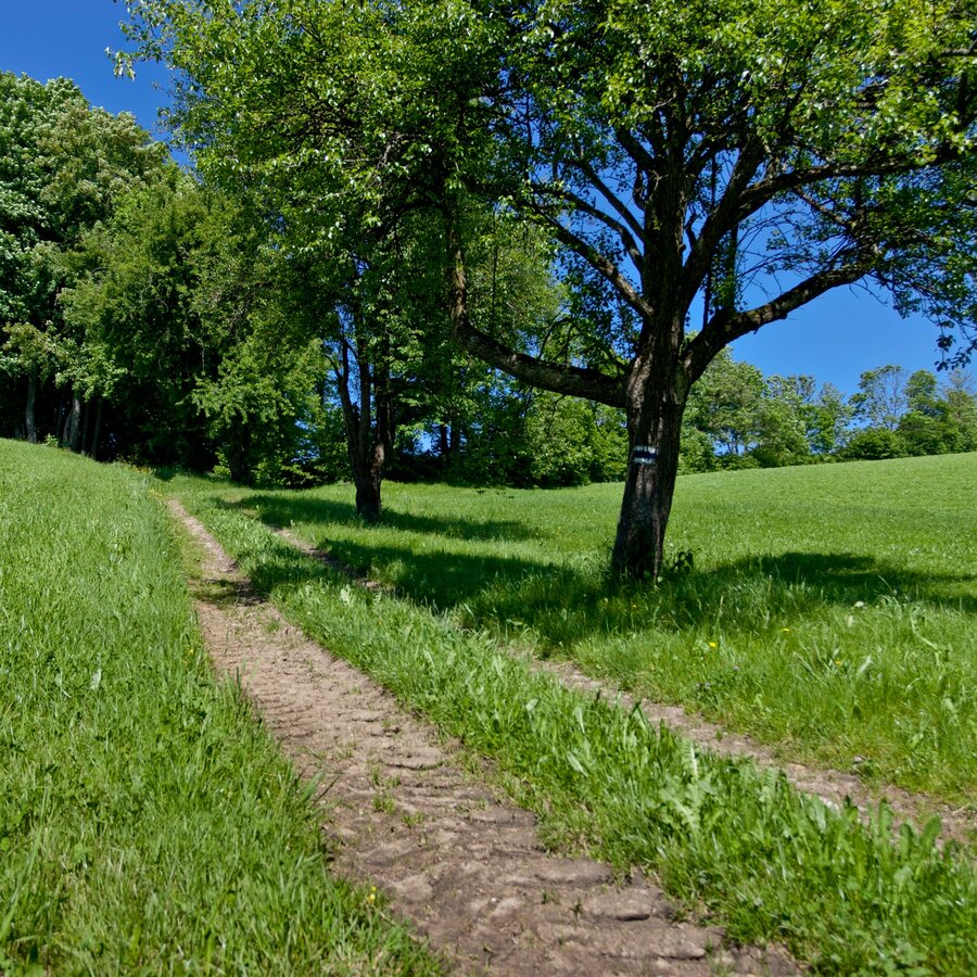 Kurze Waldstücke und Abschnitte vorbei an Feldern wechseln sich nun auf unserem Aufstieg Richtung St. Magdalena am Lemberg ab. Es geht auf diesem Wegstück nun für uns nahezu immer am Rand eines Lindenwaldes am Höhenrücken entlang bis zur Kuppe des Burgstall. Das Gelände ist Zeuge einer namentlich unbekannten Wehranalage vergangener Tage.Kurz vor St. Magdalena gelangen wir noch zum Mantschenkreuz, dessen Platz uns einen beeindruckenden Panoramablick auf Hartberg und die Berge der Oststeiermark wie Kulm, Masenberg oder Wechsel gewährt.