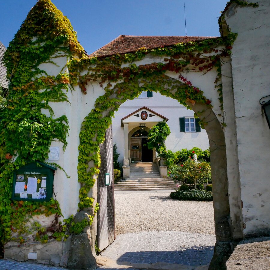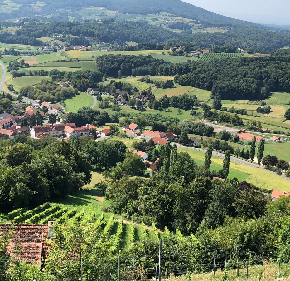Immer wieder bieten sich uns auf dieser Tour Ausblicke auf die Vulkankegel von Riegersburg und Kapfenstein, den Gleichenberger Kogel, den Stradner Kogel und den Grazer Hausberg Schöckl in der Ferne. Bei der Wegfindung helfen uns bis Kapfenstein der Ostösterreichische Grenzlandweg 07 und auch der "Handspurweg" des Vulkanlandweges. Das Schloss Kapfenstein thront neben der Riegersburg als zweite signifikante Burg seit dem 11. Jahrhundert über den Südosten der Steiermark. Das Herz der einstigen Festung stellt heute ein kleines familiäres Hotel mit einem Restaurant und wunderschönen Schlossterrassen dar, die einen traumhaften Blick über das Hügelland bieten. Es ist nicht nur ein Platz mit Geschichte, sondern wahrlich auch ein Ort, der Sehnsüchte wachsen lässt und zum Verweilen einlädt.