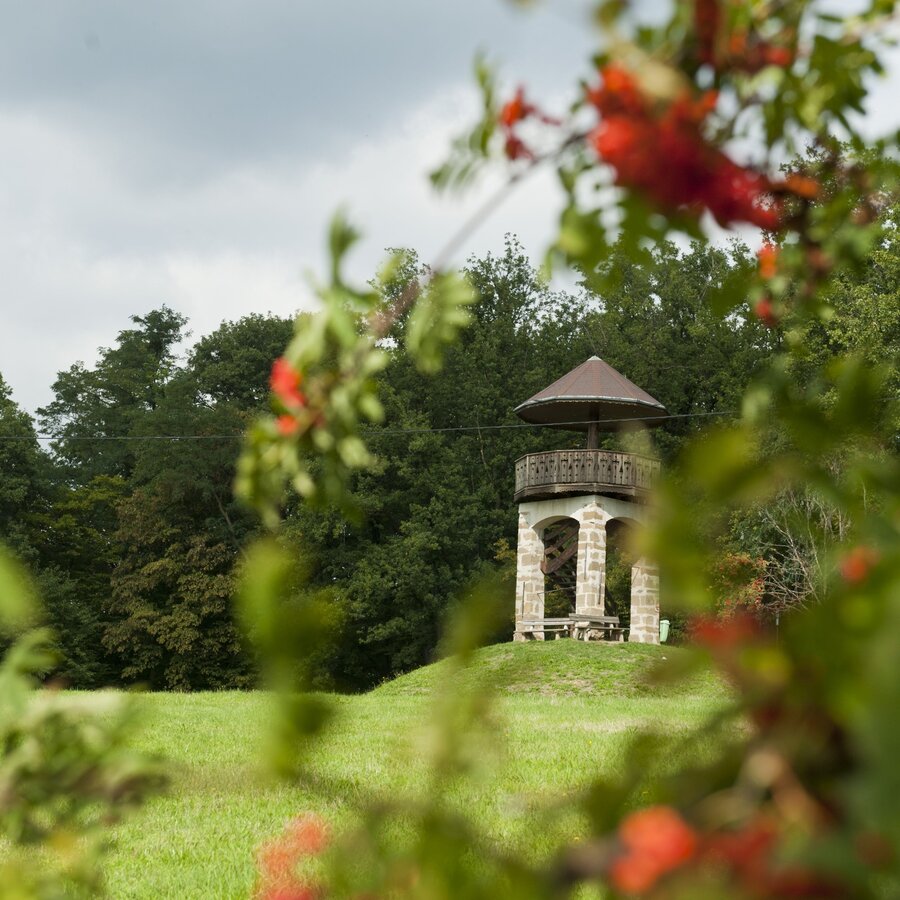 Die historische Kleinstadt Fehring im Raabtal verlassen wir auf dieser Etappe der Wanderroute "Vom Gletscher zum Wein" Richtung vorbei an der Feuerwehr und auf der Sinzingergasse nach Süden. Beim Schild „Vulkanarena Fehring“ zweigen wir nach rechts in den Wald ab und kommen bald zum geomantischen Kraftplatz Vulkanarena. Der Kraft und dem Genuss nicht genug, laden uns auf dieser Tour auch immer wieder Buschenschänken zur Einkehr ein. Danach halten wir uns auf der Straße rechts und kommen zur Kuruzzenschenke des Weingutes Konrad, wo wir uns geradewegs in den Wald begeben. Hier benutzen wir einen Steig für den Aufstieg auf den Kuruzzenkogel. Man könnte auch unterhalb des Kogels vorbei gehen, doch die 1895 von der Familie Konrad errichtete Kapelle und die Rastmöglichkeit lohnen die Mühe des Aufstiegs.
