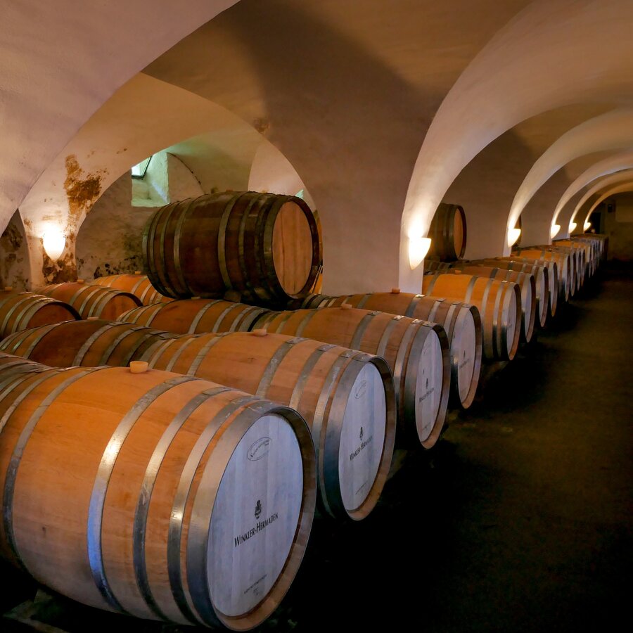Auf etwa halber Strecke gelangen wir zum Kapfensteiner Kogel, einem erloschenen Vulkan, der heute nicht nur Heimat eines wunderschönen Schlosshotels ist, sondern auch eines der besten Weingüter der Steiermark. Im Weingut Winkler-Hermaden werden die Reben bzw. Weine nach biologischen Richtlinien in dritter Generation bearbeitet. Die weißen Hauptsorten sind Sauvignon blanc, Traminer & Gewürztraminer, aber auch Burgundersorten wie Weißburgunder und Grauburgunder. Die wichtigste Rotweinsorte im Repertoire ist der Blaue Zweigelt, der sich auch zu 100% im bekannten Olivin wiederfindet. Nach dem Blauen Zweigelt folgen Merlot und Pinot noir.