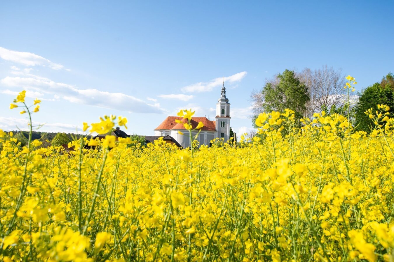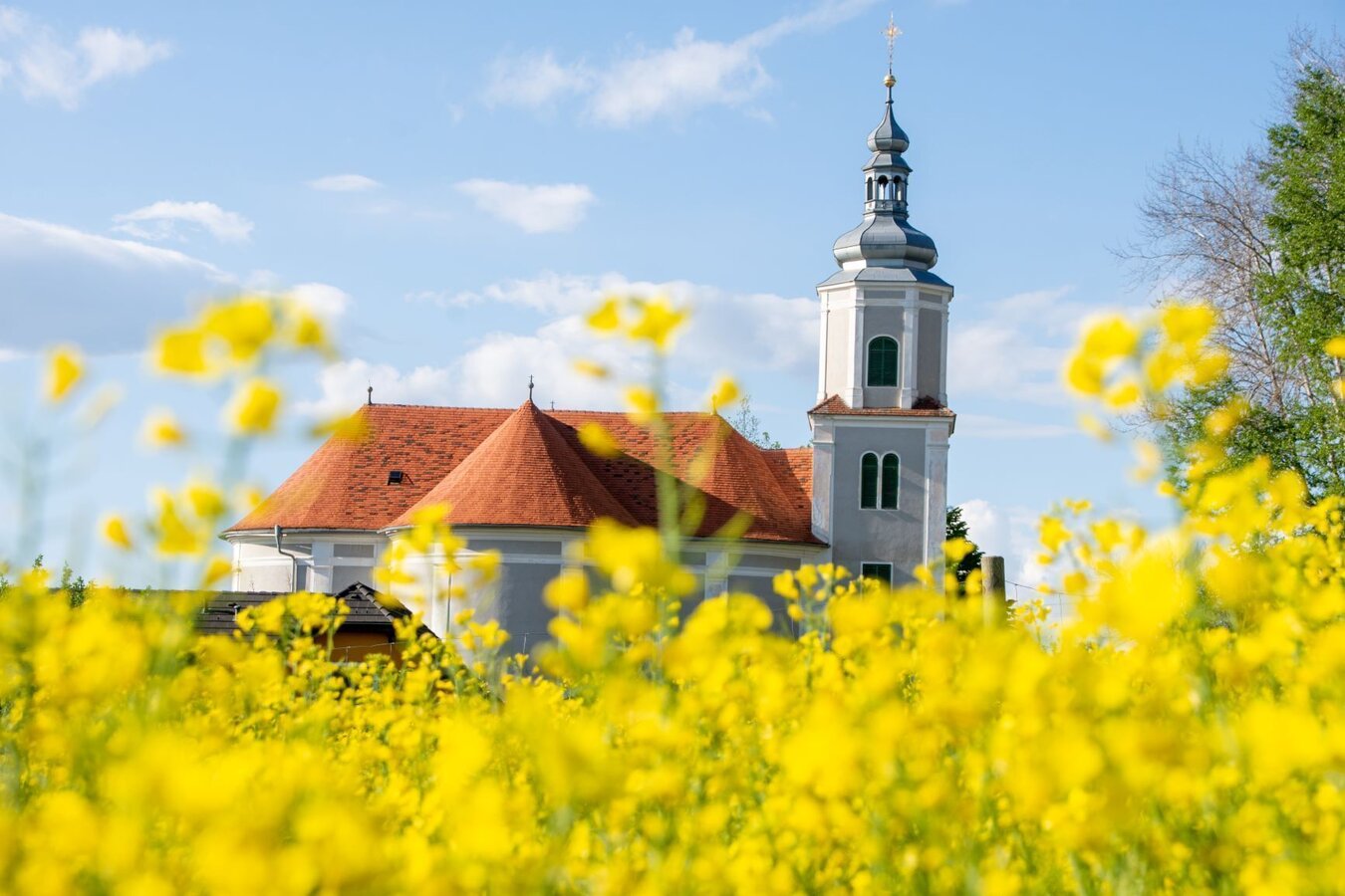 Weiter geht es ein Stück durch den kleinen Ort Großwilfersdorf vorbei an der Kirche. Bei der Ampelkreuzung geht es links Richtung Jobst. Eine kleine Rast empfiehlt sich bei der im Jahre 1741 erbauten Barockkirche St. Anna in Jobst.