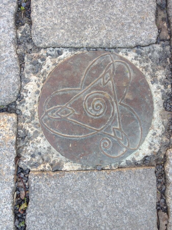 Die Bronzeplatte befindet sich genau am eigentlichen Quellpunkt zwischen dem mittelalterlichen Absteckpunkt der Stadt und der Mariensäule.