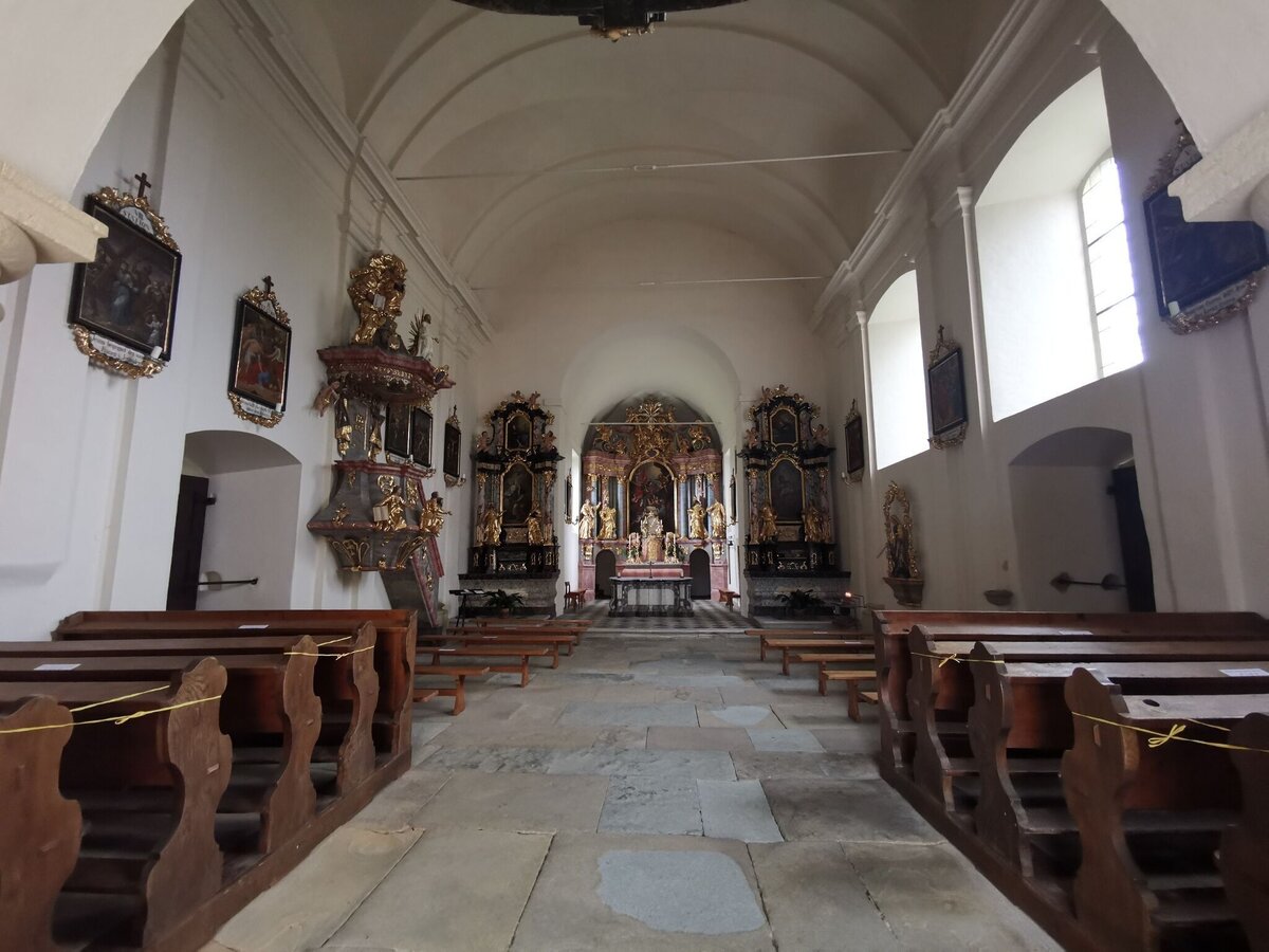 Parkplatz auf der linken Seite nach der Raiffeisenbank oder beim Friedhof