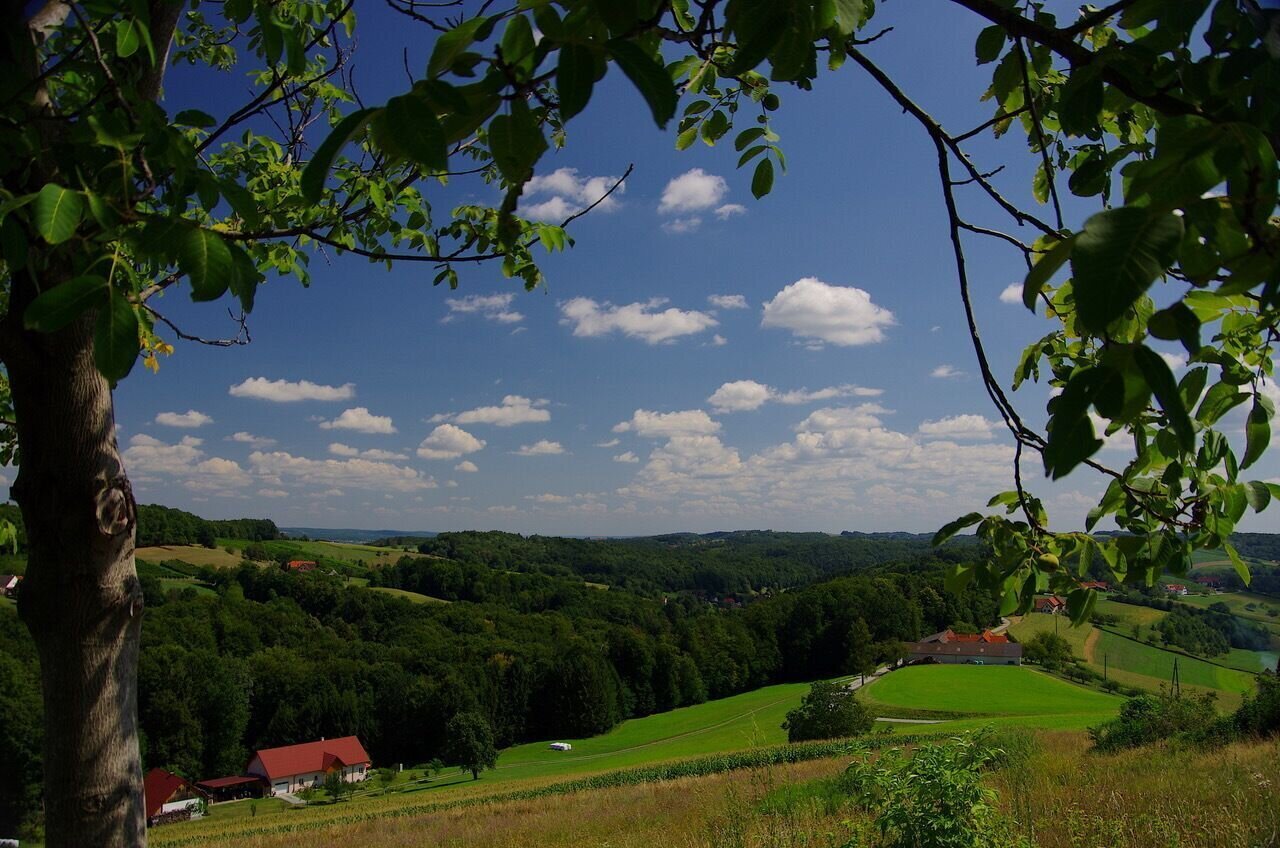 Das Schöne auf diesem Weg ist, dass man sehr viel auf Kammlagen und Höhenrücken unterwegs ist und dadurch immer wieder neue und auch weite Ausblicke hat. Hier zeigt sich das steirische Hügelland in seiner schönsten Form.