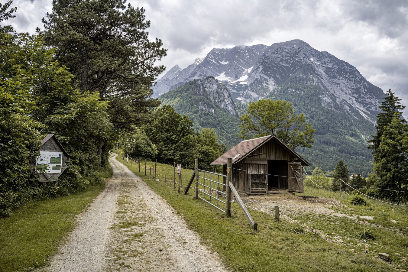 Über Unterburg nach Pürgg und weiter über GH Dachsteinblick und Hof Gindl nach Lessern. Entlang des Naturlehrpfades zurück zum Ausgangspunkt.
