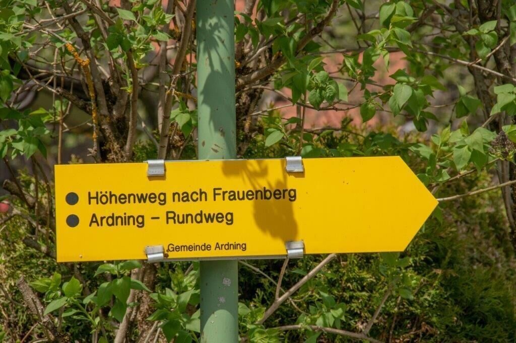 Wir beginnen unsere Runde gegenüber dem Parkplatz im Zentrum von Ardning und gehen laut Beschilderung "Höhenweg Frauenberg" und "Rundweg Ardning" Richtung Norden.