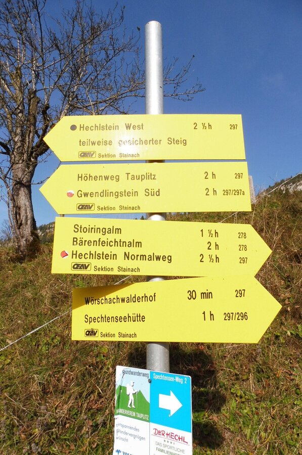 Wer eine kürzere und einfachere Variante bevorzugt, kann zwischen Gwendlingstein und Hechlstein Richtung Süden absteigen und so zurück nach Tauplitz gelangen.