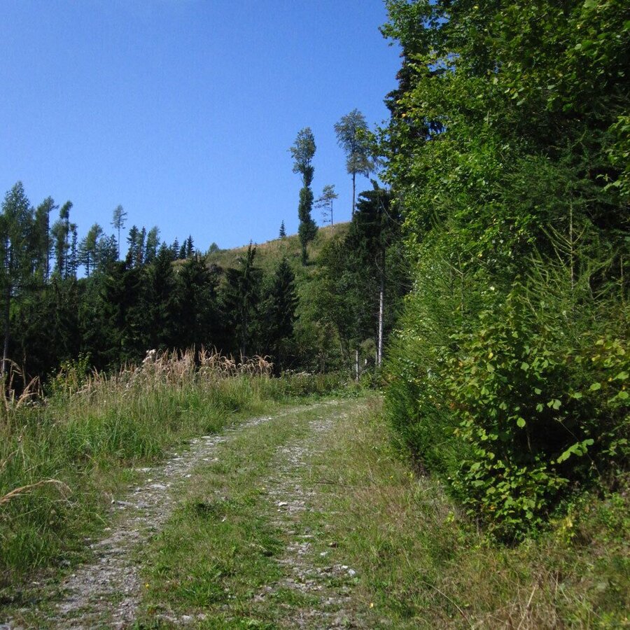 • Danach zweigt rechts eine Forststraße ab, die bis nach Eibisberg führt (nach dem Forsthaus keine Markierung mehr!).