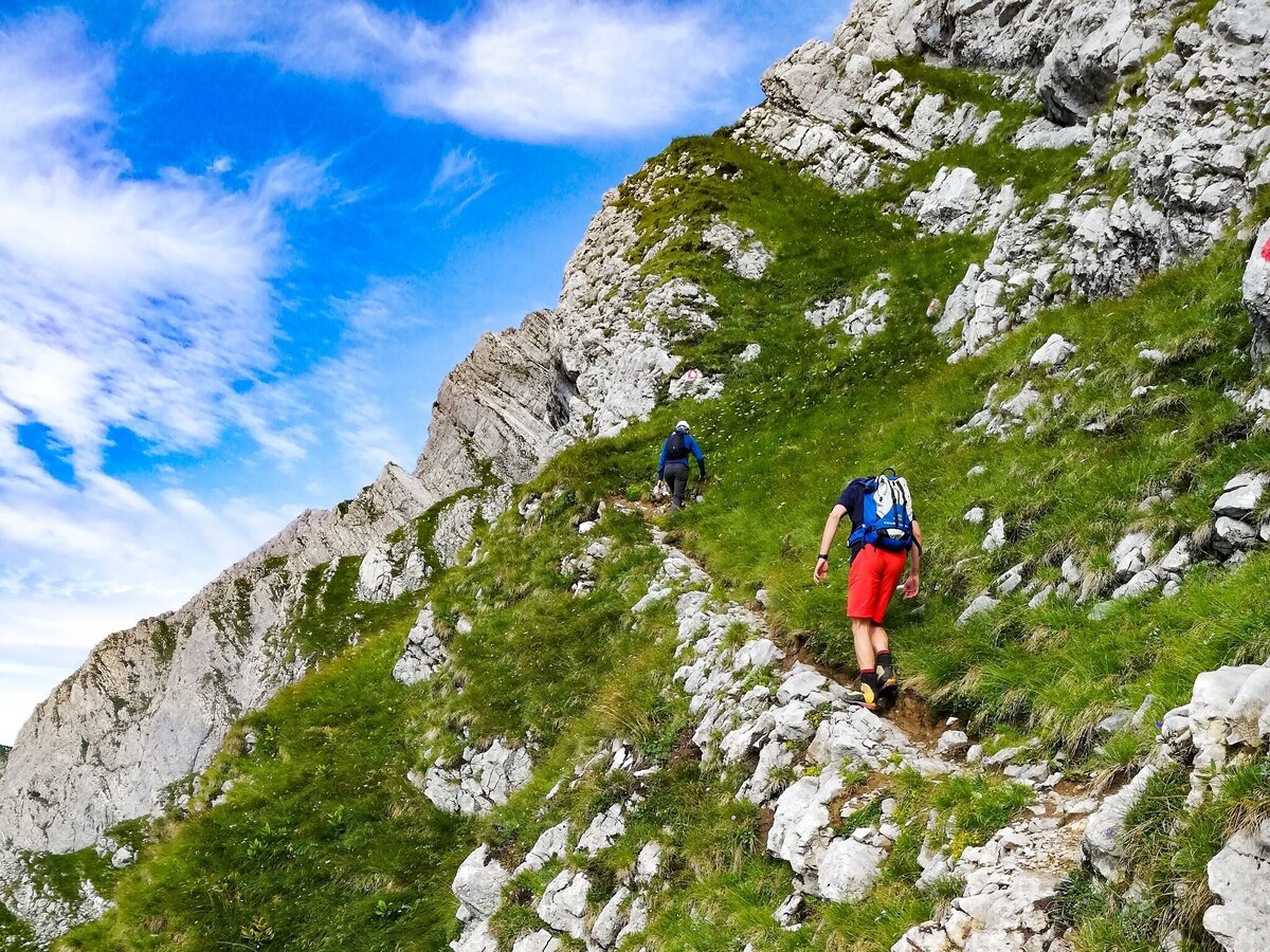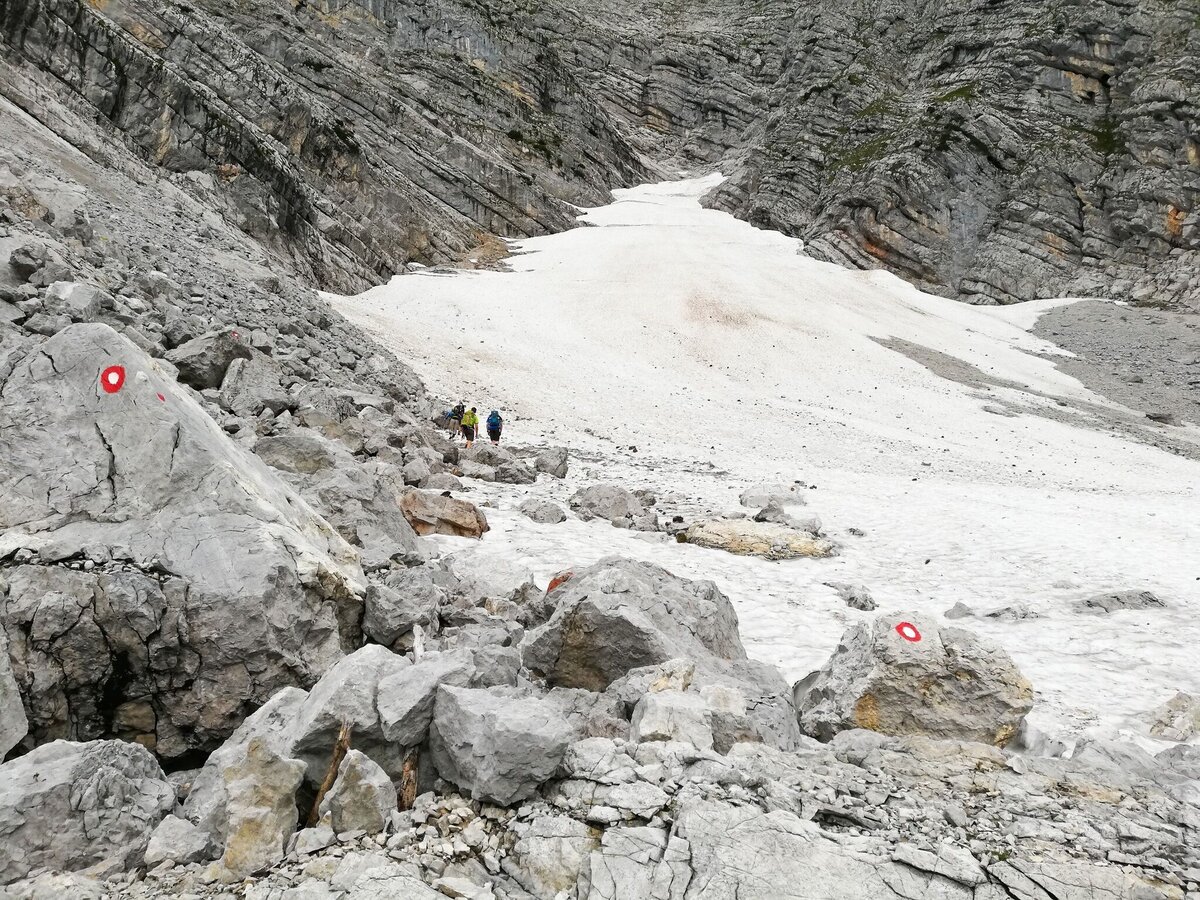 Zeitig in der Früh starten, vor allem an heißen Tagen. Um Dir eine Stunde Gehzeit zu ersparen, kannst Du gut auf der Grimminghütte nächtigen.