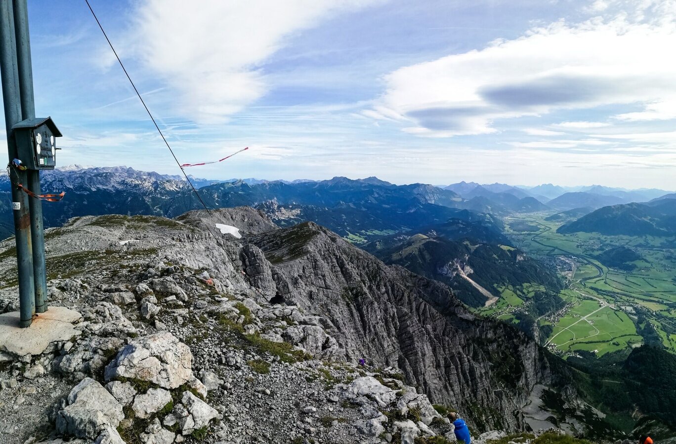 DER ZAHNIGSTE Aufstieg auf den Berg der Berge ist der Südostgrat. Nach der Grimminghütte geht´s über Leitern und Latschen zur Schneegrube und weiter über die Plattenrampe auf den Grat. Über mehrere Kletterpassagen kommst Du zum Gipfelkreuz, wo schon 2 351 Endorphine auf Dich warten. Schlichtweg phänomenal!