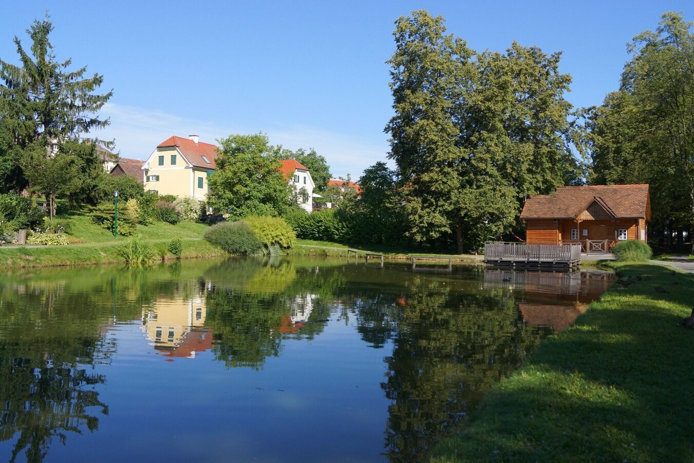 - Über die Brücke kommen wir in den Aupark und in weiterer Folge ins Ortszentrum von Pöllau mit der großen ehemaligen Stiftsanlage.