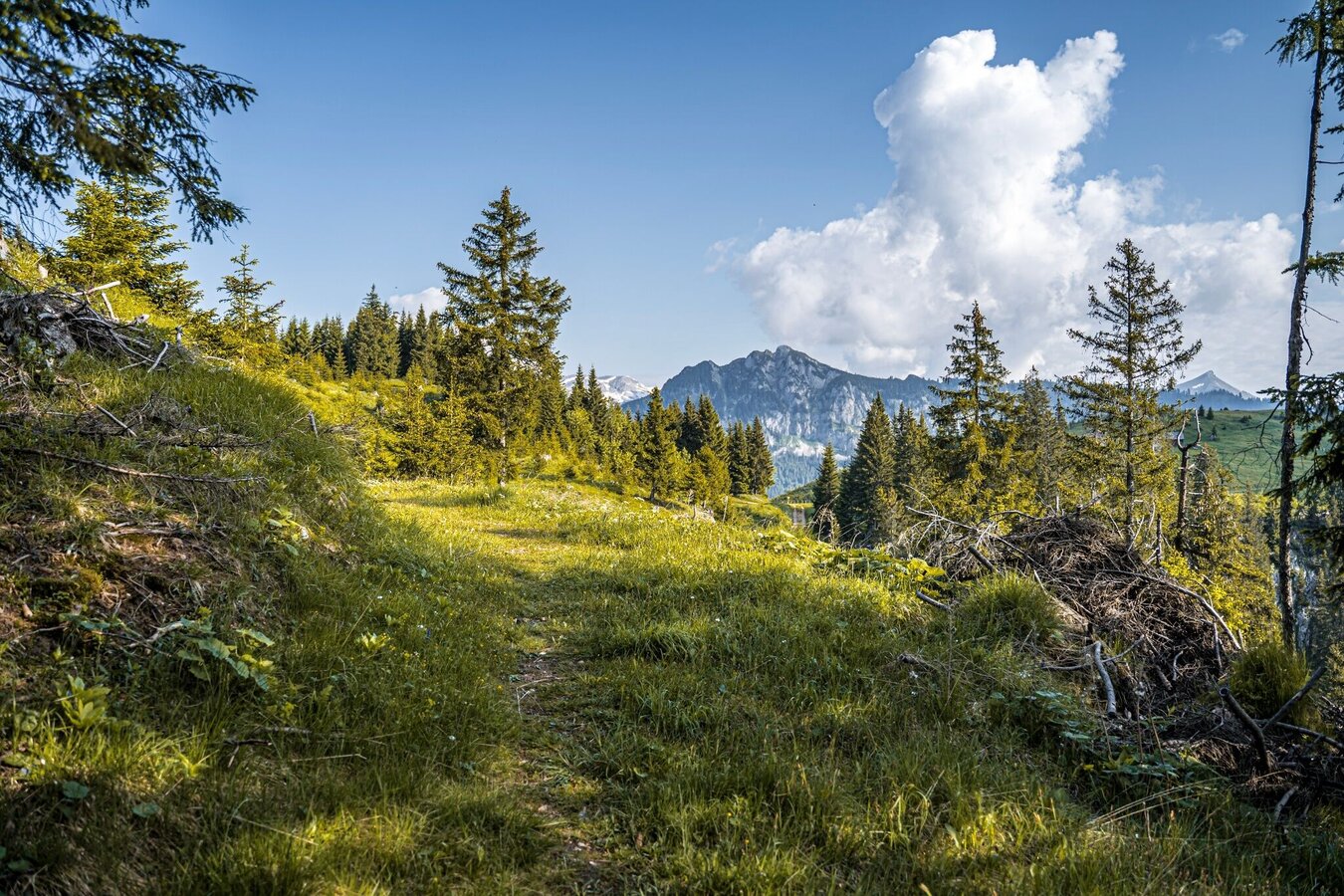 Die Wanderung zum Jagerbichl und zur Brandangeralm führt Dich entlang vielfältiger Wegabschnitte. Aus Pürgg hinaus wanderst Du entlang von Bergwiesen und danach hinein in einen artenreichen Fichtenmischwald. Vor allem der Bodenbewuchs hat hier mit vielfältiger Flora einiges zu bieten. Mit der Brandangeralm und der Hochalm rund um die Schröflhütte laden auch zwei schöne Almgebiete zum Verweilen ein. Ab dem Brandanger kannst Du auf dem Weg #289 auch eine Runde um den Brandangerkogel machen oder einen Abstecher zum Leistenstein.