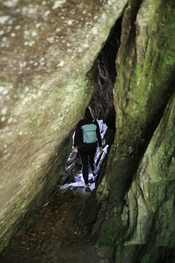 An der nachfolgenden Quelle kannst du dich nochmals erfrischen, bevor die Auf und Ab‘s des Weges mehr werden. Begleitet vom Duft aus feuchtem Moos, Sauerampfer und Walderdbeeren entwickelt sich ein einmaliges Gefühl, wenn du dann auf weichem Boden, manchmal auch über Wurzeln und Steine dahin wanderst, den Gedanken freien Lauf lässt und über die Kraft des Wassers staunst, das über den Felsen in die Tiefe stürzt. Hier solltest du einen Augenblick verweilen, die klare Frische einatmen und die nassen Spritzer auf der Nasenspitze spüren.
