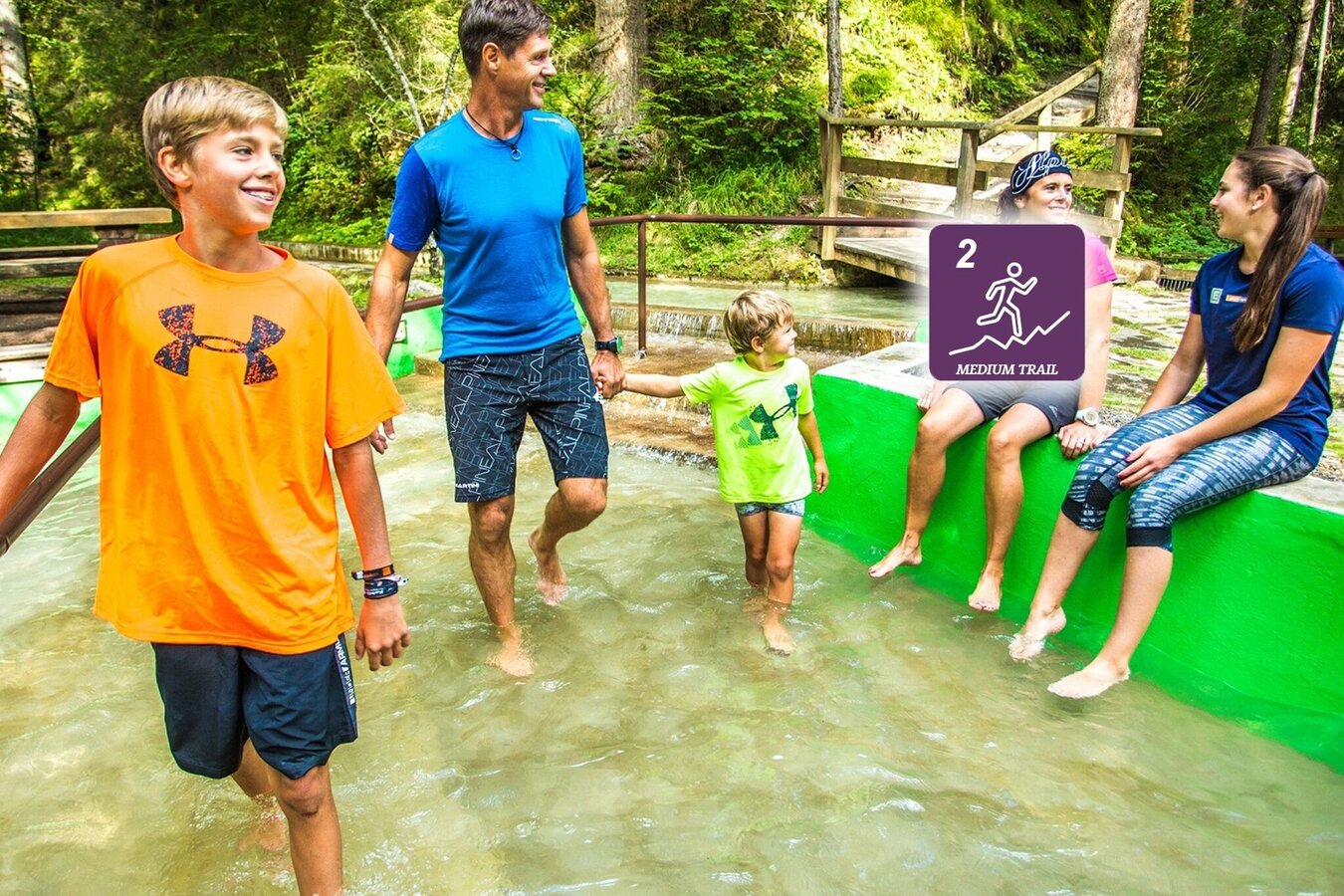 Abkühlung in der Freiluftkneippanlage einplanen und genießen! Trinkflasche kann direkt bei der Kneippanlage mit gutem Bergquellwasser von Siebenbrünn nachgefüllt werden.