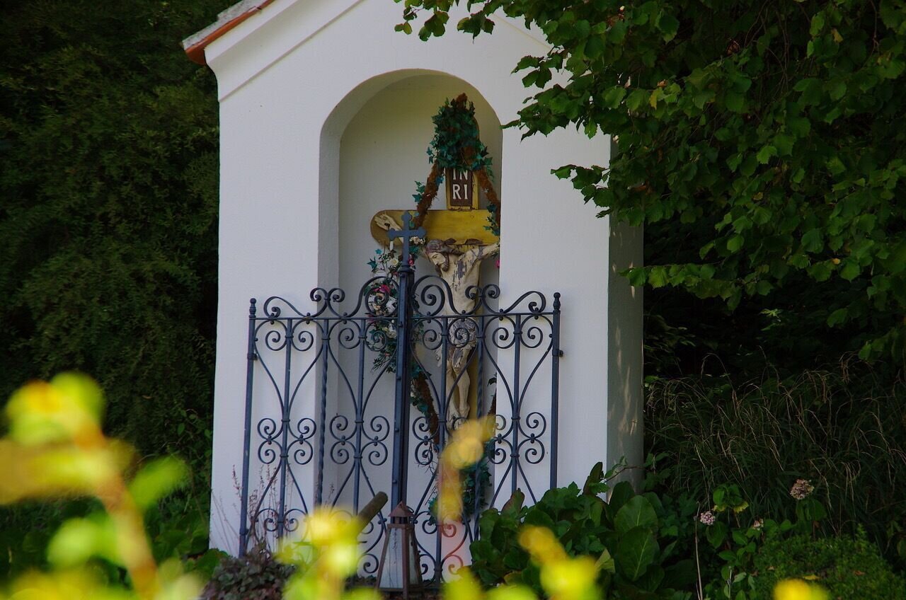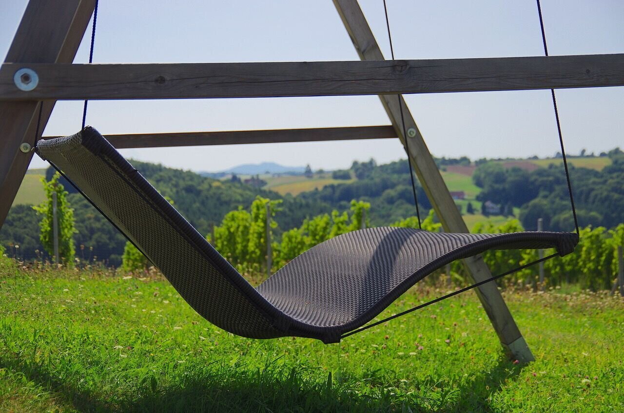Wegkreuze, Marterln und Kapellen säumen diesen auch landschaftlich reizvollen Weg. Zwischen Weingärten hat man auf einer Schwebeliege Zeit, den wohl schönsten Blick über den Ortsteil Stein zu genießen.