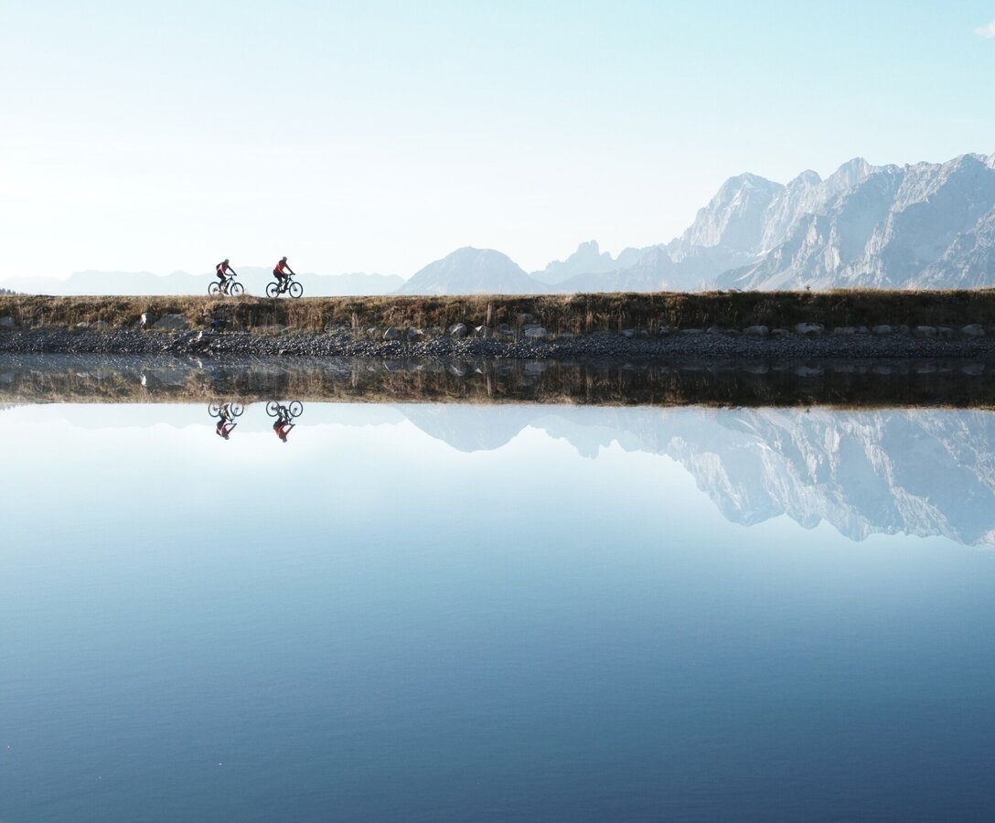 Danach geht es leicht bergab zum idyllischen Speicherteich, wo die Sonnenterrasse der Kaiblingalm zu einer Rast einlädt. Hier hast du zwei Möglichkeiten für die Abfahrt: Entweder du genießt die lange Abfahrt direkt ins Tal oder fährst nur die Hälfte bergab, bis du auf die Beschilderung der Gumpentalrunde triffst. Dieser Route folgend, gelangst du wieder zurück zur Bergstation – ideal für sportliche Mountainbiker, die eine abwechslungsreiche Runde suchen.