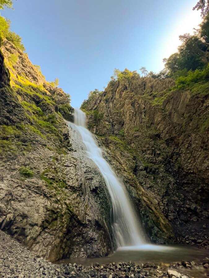 Je näher du dem Ziel kommst, desto eindrucksvoller wird die Umgebung: Auf einem gesicherten Steig, der sich in Serpentinen am Hang entlangwindet, überquerst du kleine Brücken und erreichst schließlich den  wildromantischen Wasserfall von Lessern – je nach Jahreszeit stürzt das Wasser hier aus bis zu 80 Metern Höhe tosend in die Tiefe. Ein idealer Ort, um innezuhalten  und die Kraft der Natur auf sich wirken zu lassen.