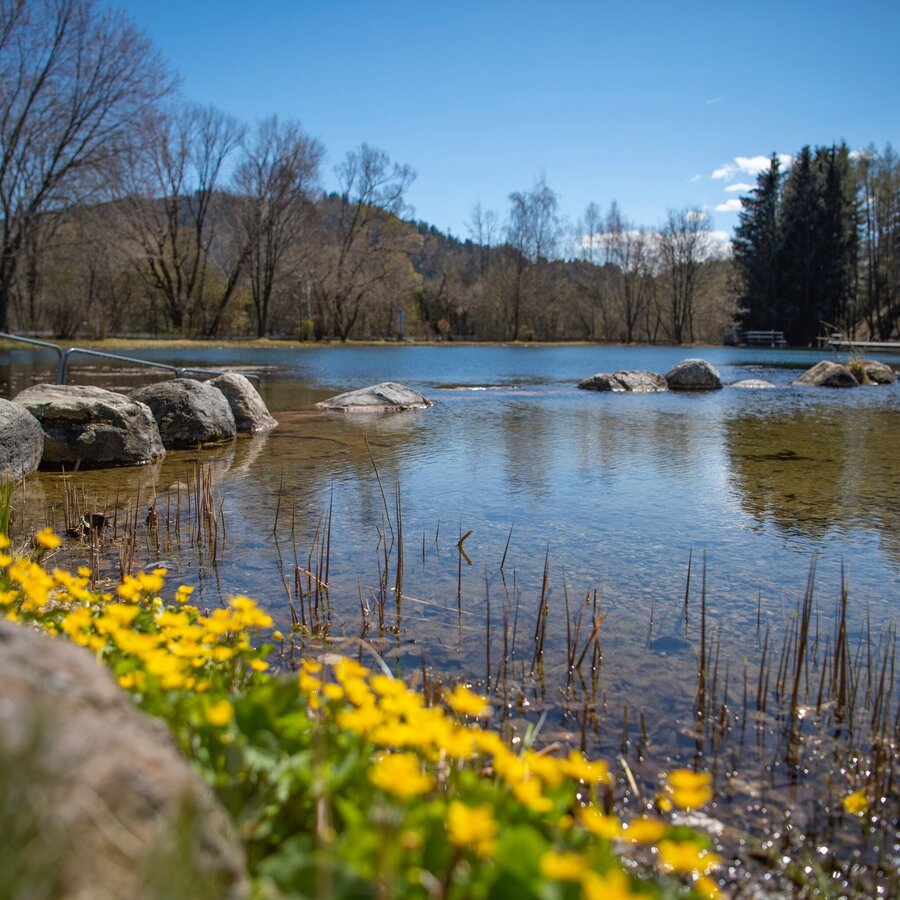 Weiter geht es entlang der Bundesstraße Richtung Pöls hier machen für eine Pause bietet sich hier der Biobadeteich Pöls an wo sie im Schatten die Ruhe genießen können.