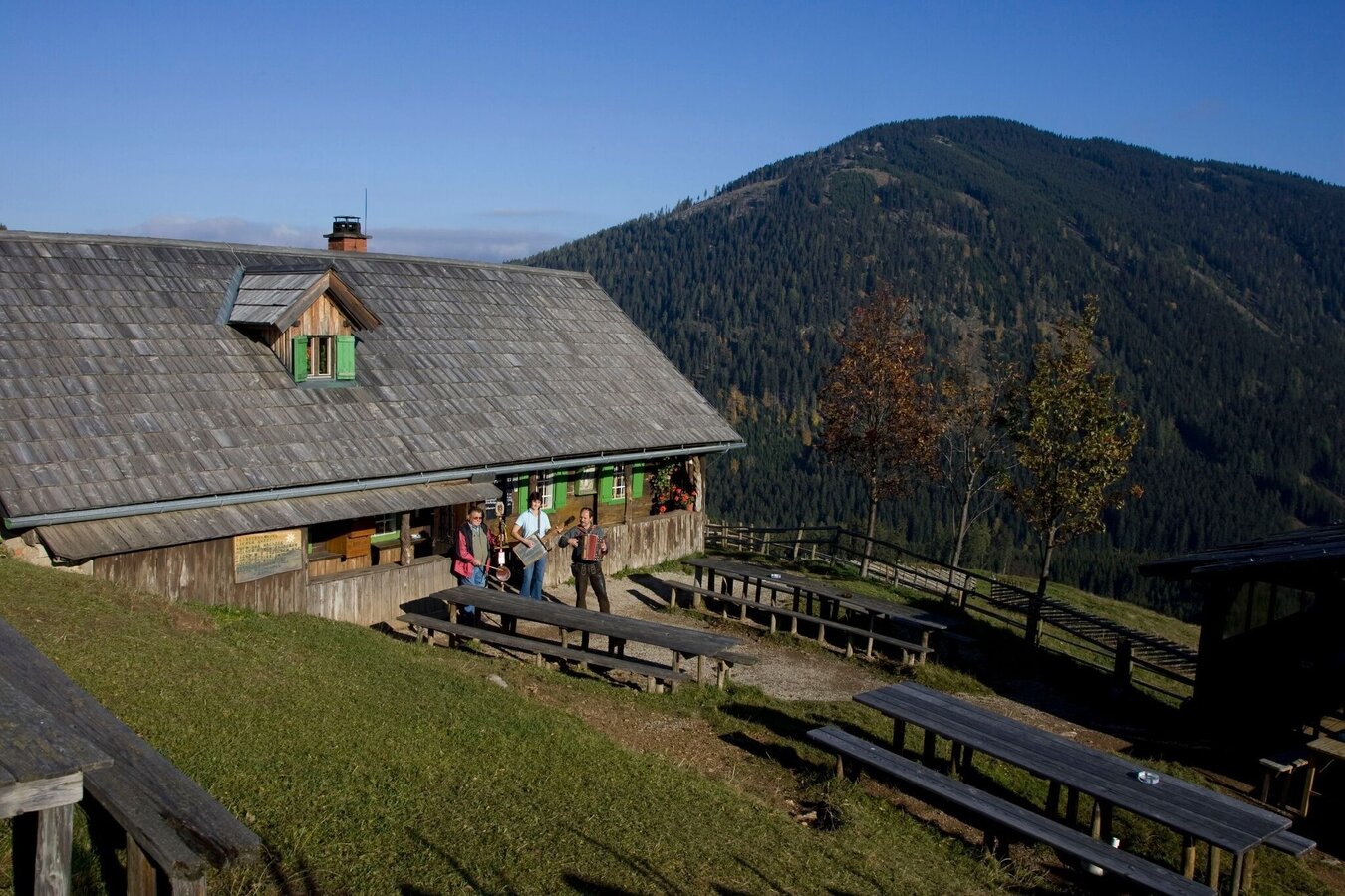 Erleben Sie eine anspruchsvolle Wanderung von Mixnitz über Bucheben zur Roten Wand im Naturpark Almenland. Der Weg führt über Naturpfade, Waldwege und Wiesen. Am Weg trifft man mit etwas Glück auch Steinböcke. Trittsicherheit ist aufgrund von Steinen und Geröll erforderlich. Der Gipfel belohnt mit einem imposanten Kreuz und spektakulären Aussichten. Am Weg laden Einkehrmöglichkeiten ein, besonders reizvoll ist die Tyrnaueralm Hütte. Hier spielt der "Alm Erich" für seine Gäste auch auf der Steirischen Harmonika auf und zudem gibt es kühle Getränke und eine zünftige Jause.