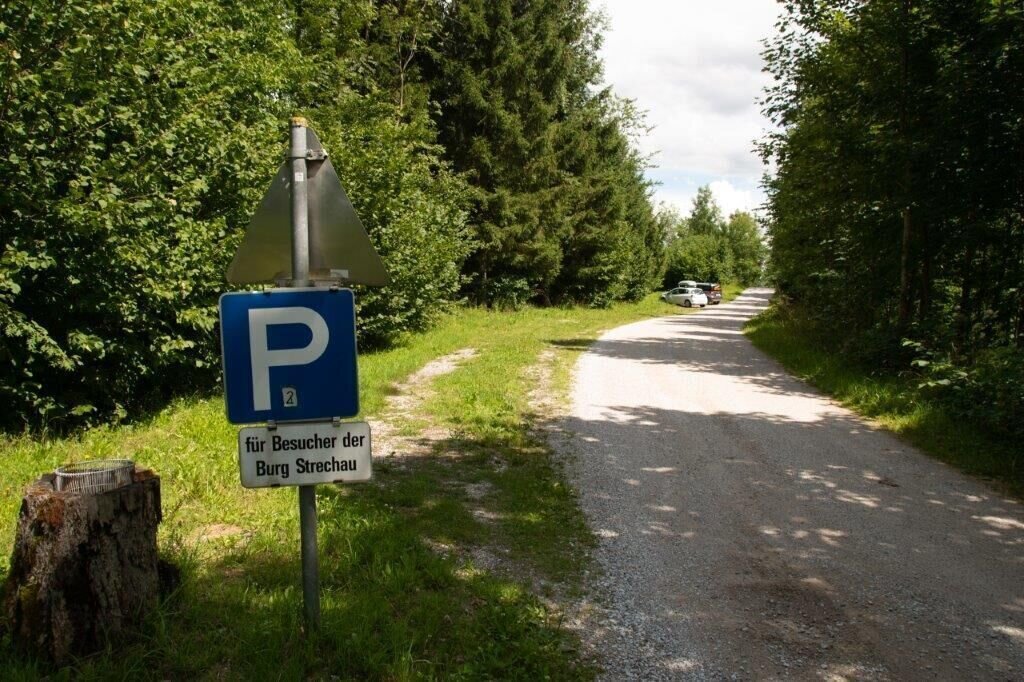 Nach der Besichtigung des Schlosses geht es gegenüberliegend einen kleinen Steig hinunter. Bei der ersten Möglichkeit links der Beschilderung folgend.