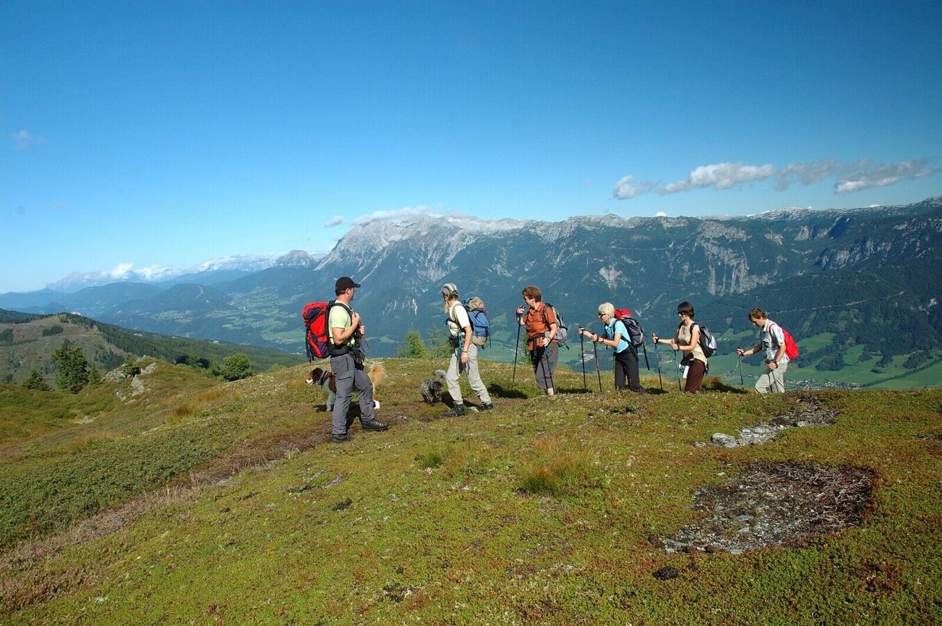Überraschend schön ist der Ausblick von der Ochsenkarhöhe und dem Scheibleck: Pleschnitzzinken, Sattental, Gumpeneck, Hochwildstelle, Bischofsmütze, Dachsteinkette, Totes Gebirge, Ennstaler Alpen, Tauern.Botanische Highlights: Almrausblüte in der ersten Julihälfte, blauer Eisenhut (im Gipfelbereich) im August, großartiger Herbstfärbung der umliegenden Wälder im Herbst.