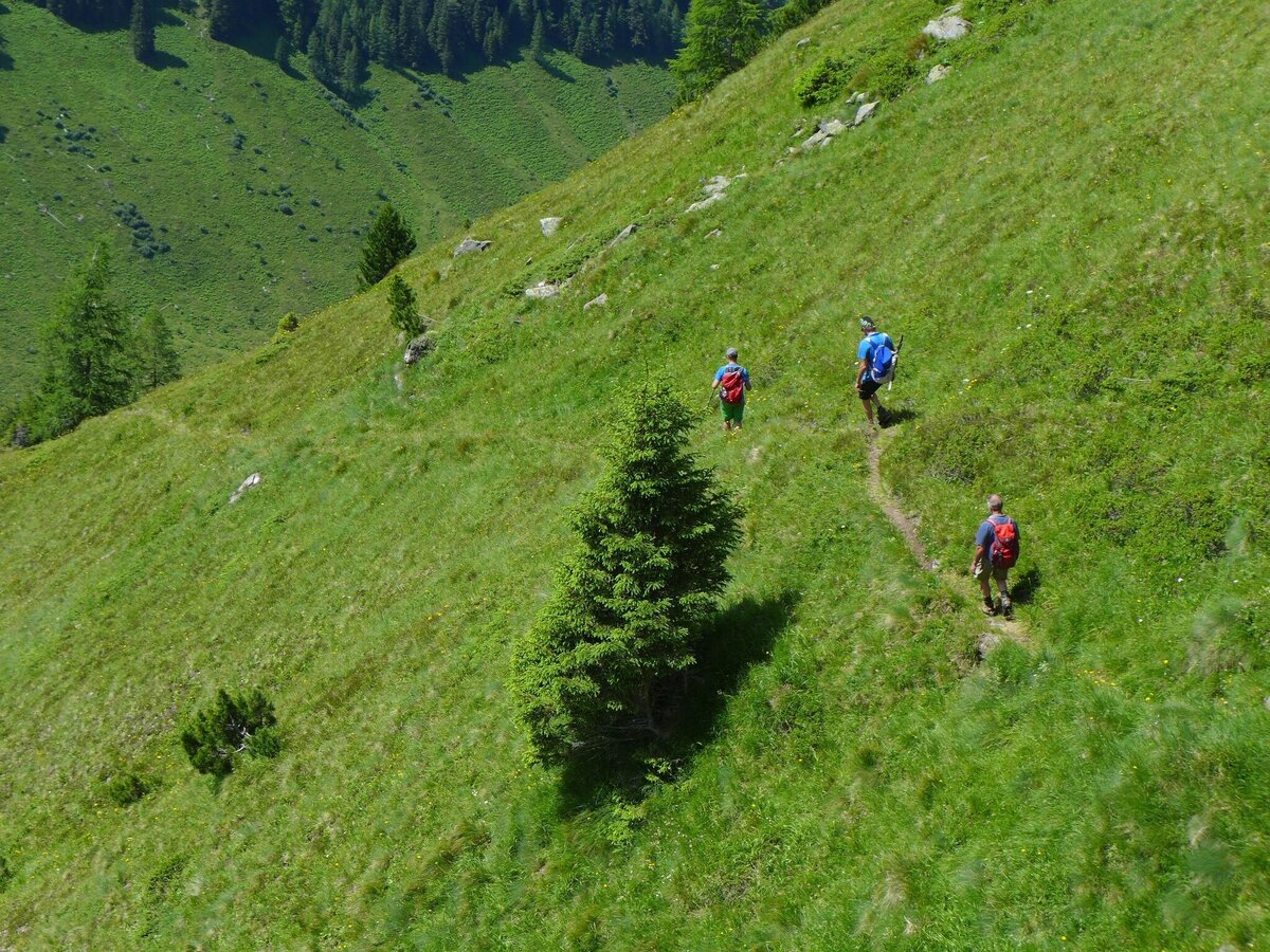 Bald ist der Seekarlsee erreicht. Die extreme türkise Farbe des Sees vermittelt Karibikfeeling in 2.140m Seehöhe. Nach dem Seekarlsee geht es über Almwiesen bergab. Ab 1.900m Seehöhe wird das Gelände steiler. In Serpentinen geht es zur Tuchmoaralm (1.509m). Die Köckhütte und die Blasenalm laden zur Einkehr ein.