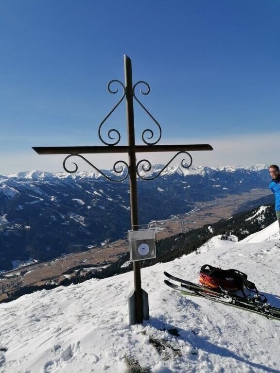 Hier halten wir uns jetzt rechts, um über einen Rücken zum Gipfelhang zu gelangen. Steil hinauf über den Grat geht es zum Gipfel mit seiner traumhaften Aussicht - im Norden die Bergwelt des Gesäuses und im Süden die Niederen Tauern. Die Abfahrt ist ident mit der Aufstiegsroute.