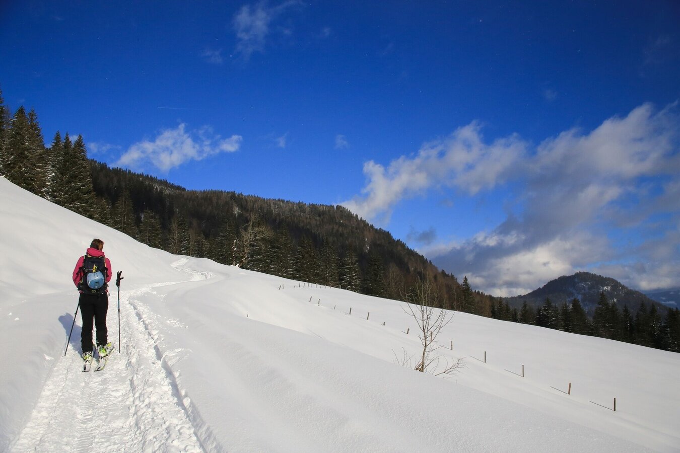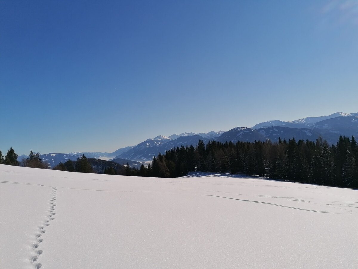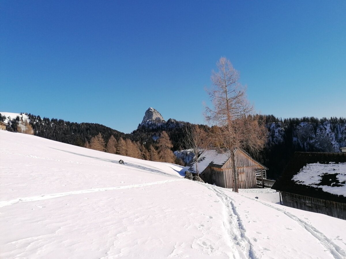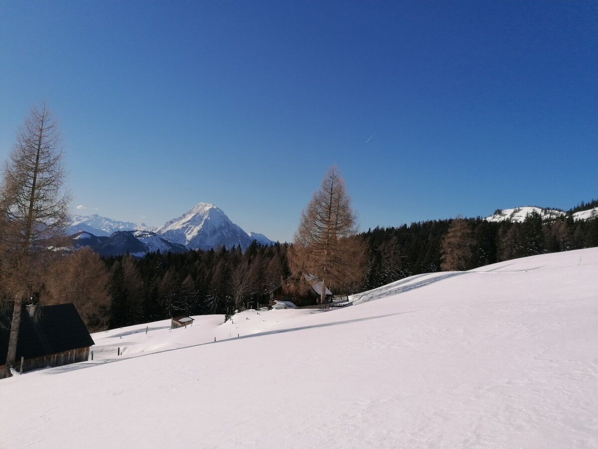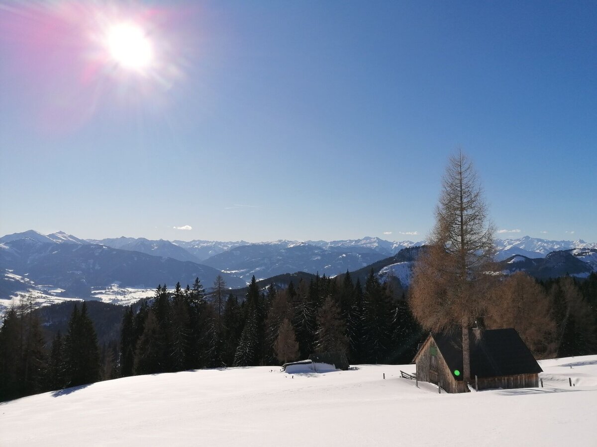 Aller Anfang ist juhu! Du bist ein Greenhorn? Dann sollte das die Jungfernfahrt für Deine neuen Skier werden. Denn hier bringt Dich eine äußerst gemütliche Forststraße hinauf zu einer ausgesprochen aussichtsreichen Alm.
