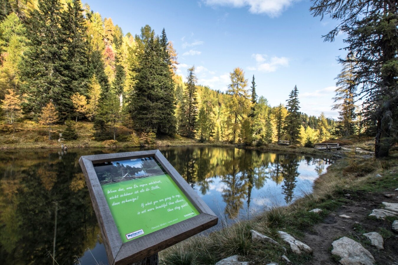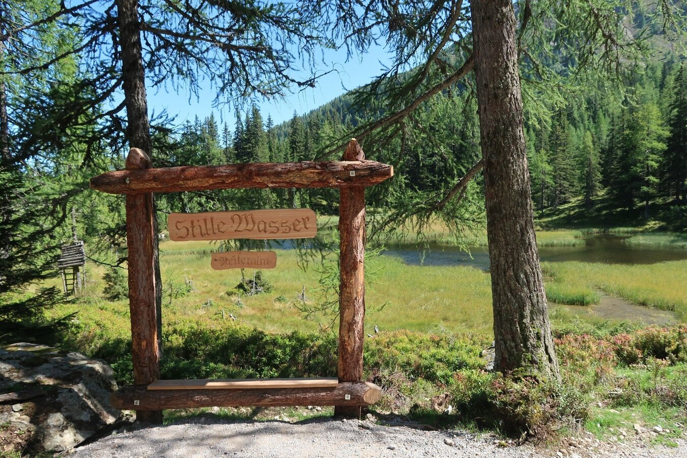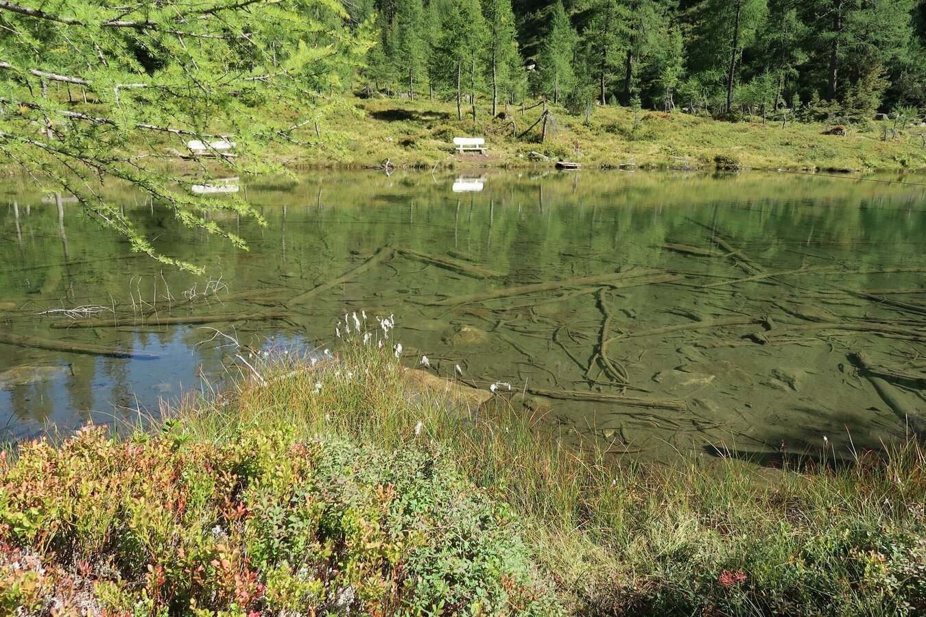 Über einige Serpentinen folgst Du dem Weg nun bergab bis du nach kurzer Wanderung einen kleinen See erreichst - von den Einheimischen liebevoll "Glackerch" genannt. Weiter geht es durch den lichten Wald zu einem weiteren kleinen See - dem Waldsee. Hier lädt ein idyllisch gelegenes Bankerl zum Verweilen ein.
