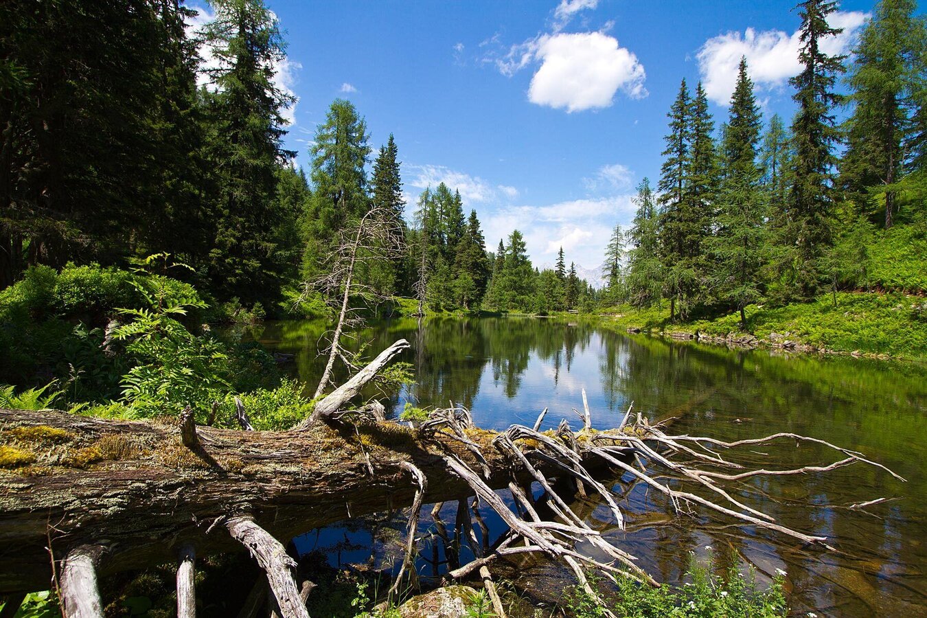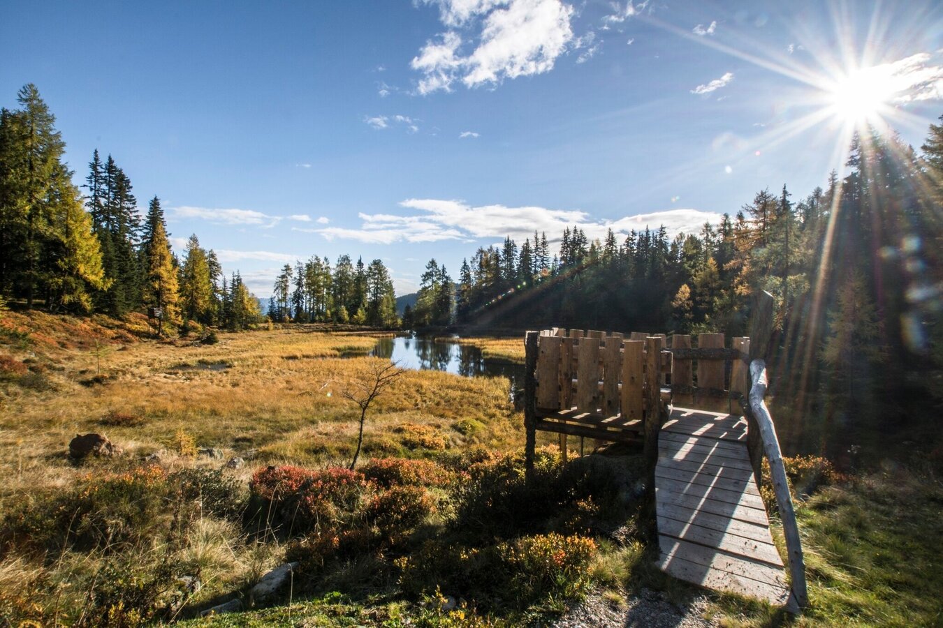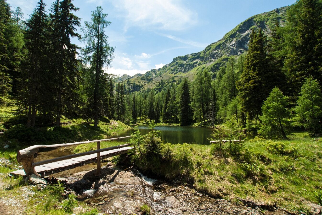 Über einige Serpentinen folgst Du dem Weg nun bergab bis du nach kurzer Wanderung einen kleinen See erreichst - von den Einheimischen liebevoll "Glackerch" genannt. Weiter geht es durch den lichten Wald zu einem weiteren kleinen See - dem Waldsee. Hier lädt ein idyllisch gelegenes Bankerl zum Verweilen ein.