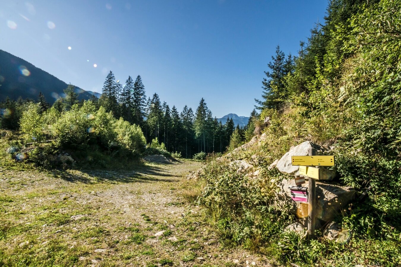 Bei Erreichen des Tettermoores führt der Weg links über den Untertalbach zum Gasthof Tetter. Von dort ca. 200 m entlang der Straße talauswärts, bevor rechts der »Gföllweg« abzweigt. Diesem schönen Wald- und Wiesenweg mit wunderbaren Aussichtspunkten folgt man bis ca. 500 m nach dem Anwesen »vlg. Wieser«, wo man links auf den Weg zum vlg. »Fenz« (in Richtung Schladming/Talbachklamm) abbiegt. Beim Bauerhof vlg. Fenz angelangt wandert man über den Spreitzweg zurück zum Ausgangspunkt in Untertal-Dorf.