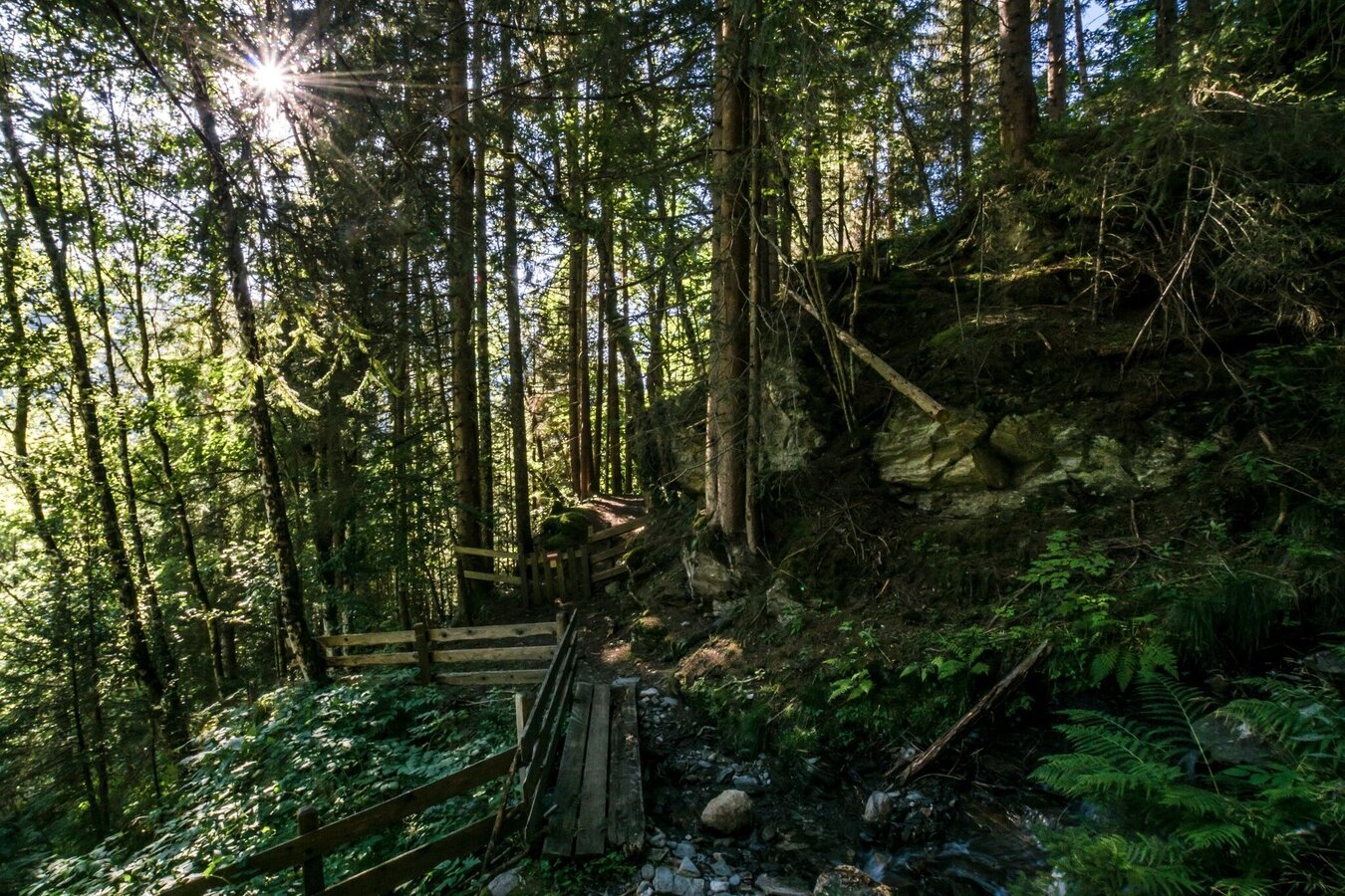 Für diese Variante beim vlg. Fenz rechts weiter, vorbei am Spreizhof und durch den Wald bergab bis in die Talbachklamm. Links - durch die Klamm - geht es nun zurück zum Ausgangspunkt in Untertal-Dorf.