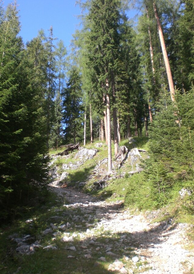 Gleich zu Beginn durchwandert man die wildromantischen Öfen, eine Schlucht, welche die beiden Berge Stoderzinken und Kamm „durchtrennt", und in deren Mitte der Gröbminger-Bach hinunterstürzt. Nach etwa eineinhalb Stunden Gehzeit erreicht man die Viehbergalm, die auf 1445m Seehöhe liegt. Danach geht es ca. 30 Minuten weiter, bis man zum Miesbodensee gelangt. Der Miesbodensee ist ein besonderes landschaftliches Kleinod des Dachsteinplateaus. Der fast kreisrunde Moorsee ist von einem ausgedehnten Schwingrasen umgeben.