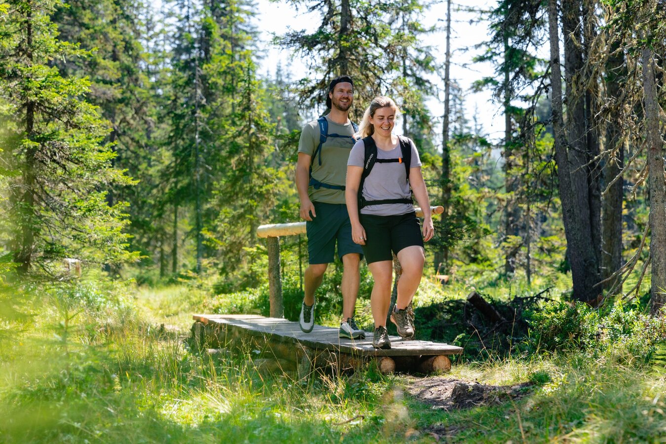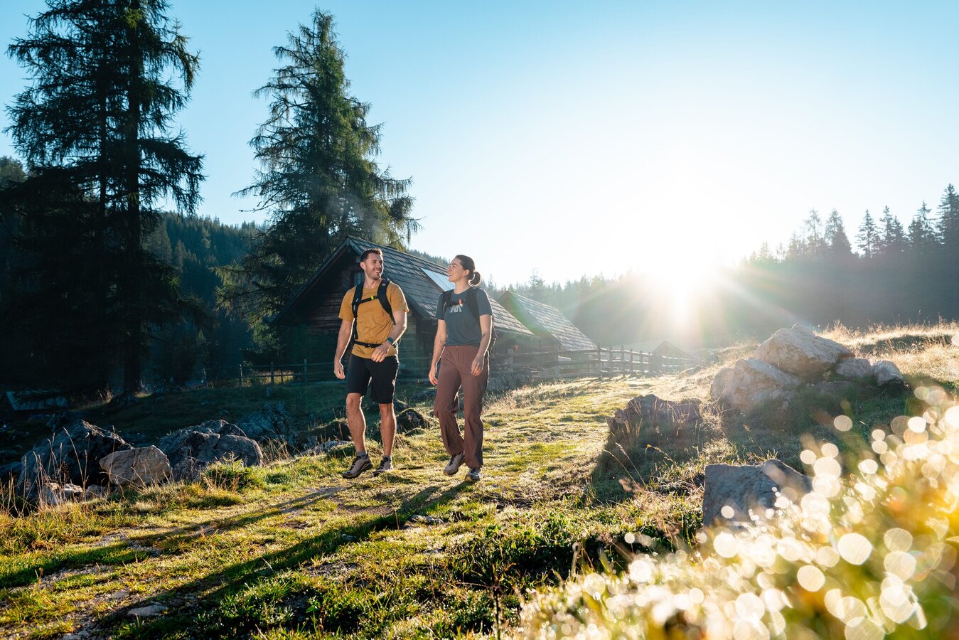 Wanderung ab der Gröbminger Kneippanlage durch die wildromantische Öfenschlucht zur Viehbergalm. Hier gibt es gleich mehrere Einkehrmöglichkeiten, wo du dich mit einer typischen Almjause für die weitere Wanderung zum Miesbodensee stärken kannst.