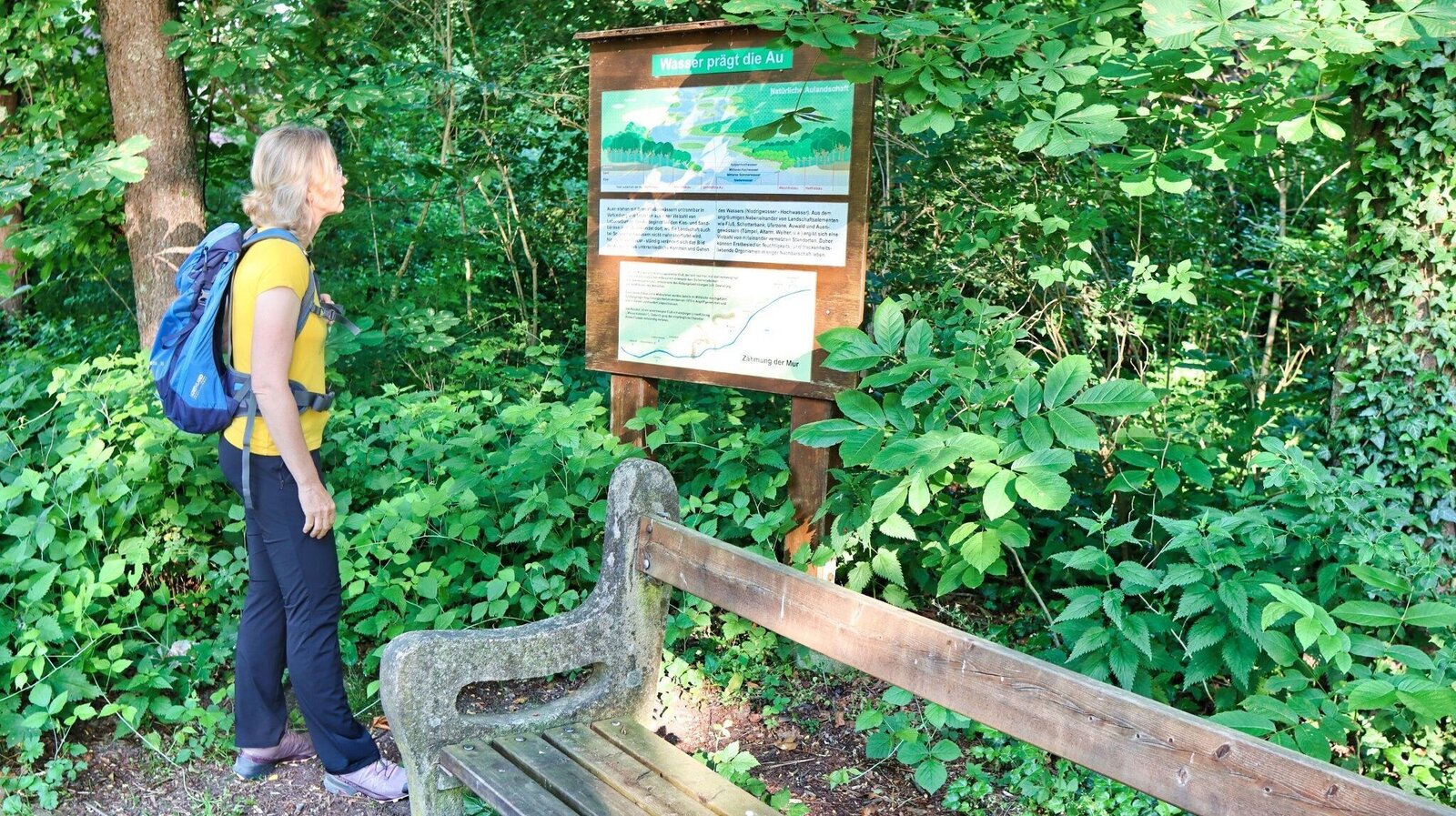 Vom Hauptplatz in Mureck (1), 237 m, sind es nur wenige Minuten bis zum Schwimmbad und dem Campingplatz Mureck. Hier ist der Parkplatz und auch der Startpunkt der Radstrecke „Amazon of Europe Bike Trail“. Wir sehen die gelben Wegweiser mit der Aufschrift „Südalpenweg 03 – Steirischer Landesrundweg“ und orientieren uns daran. Entlang einer breiten Schotterstraße geht es in Richtung Mur. Direkt beim Restaurant Mühlenhof ist auch die Murecker Schiffsmühle (2), 233 m. Der Eintritt ist beim Restaurant zu bezahlen. Wir gehen flussabwärts und genießen den breiten Gehweg in unmittelbarer Ufernähe. Auf der gegenüberliegenden Murseite ist auf der Anhöhe das Schloss Obermureck zu sehen. Wir bleiben immer entlang des Uferbereiches, gehen unter der Grenzbrücke hindurch und weiter auf einem schmalen Pfad, der offensichtlich den längeren markierten Wanderweg hier abkürzt. Es geht ein kurzes Stück entlang einer Asphaltstraße, bevor wir uns rechts halten und über einen Pfad bis zu den Gebäuden des Bauhofes kommen. Bei der Kreuzung „See-Weg“ bleiben wir geradeaus und folgen dem Mur-Grenzweg Nr.10 bis zu einem Rastplatz und in Folge bis zu unserem Ziel, dem Murturm (3), 229 m. Den Rückweg wählen wir über den Gosdorfer Rundweg Nr. 20, der beim Turm abzweigt. Wir wandern den Saßbach aufwärts bis zur Brücke an der Bundesstraße. Hier besteht die Möglichkeit, beim Gasthof zur Post (4), 234 m, einzukehren und danach auf der anderen Uferseite zurück in Richtung Mur zu wandern. Die Wanderung führt uns direkt beim Röcksee, mit Gasthof, Pension und Campingplatz, vorbei. Weiter geht es entlang der Asphaltstraße, wo der See-Weg Nr. 21 und der Radweg parallel führen. Wieder bei den Gebäuden des Bauhofes angekommen, verlassen wir die Straße, um auf den uns bereits bekannten Weg zurückzukehren.