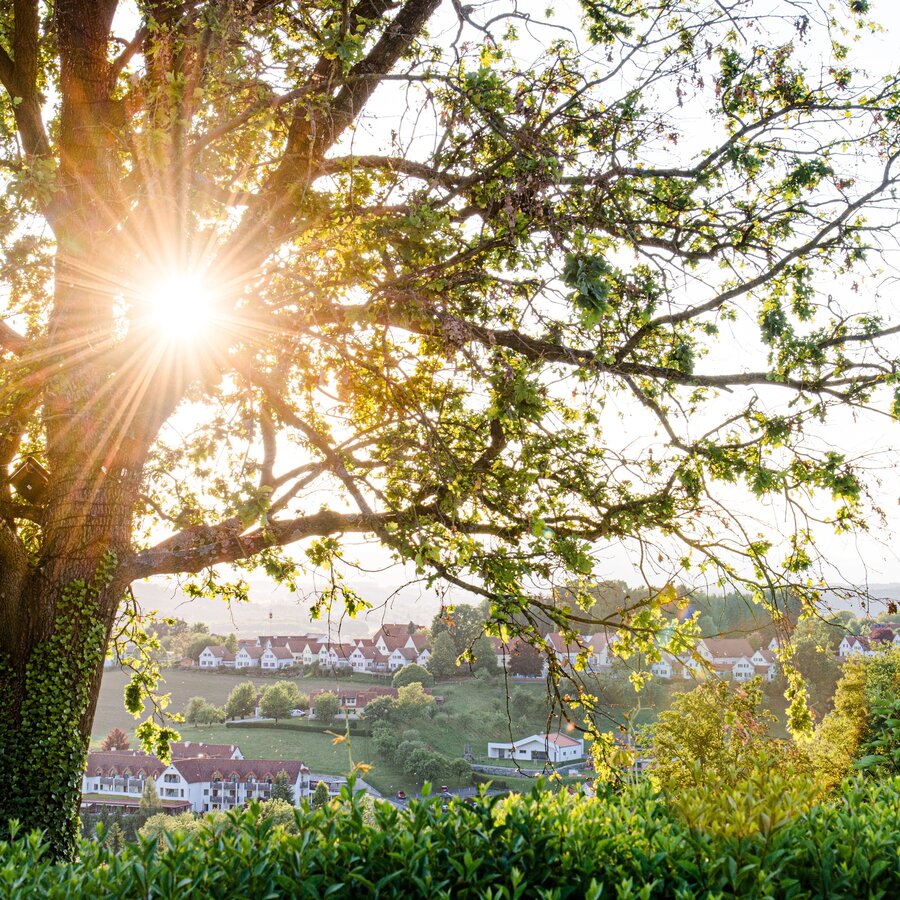 Beim H2O-Hotel-Therme-Resort befindet sich der Start dieser Tour. Die ca. 13,8 km lange Apfelbaum-Tour verläuft über das Ortszentrum, Sauberg, Leiterdorf bis zum Leiterdorfberg und über den Golfplatz wieder zurück zum Ausgangspunkt.