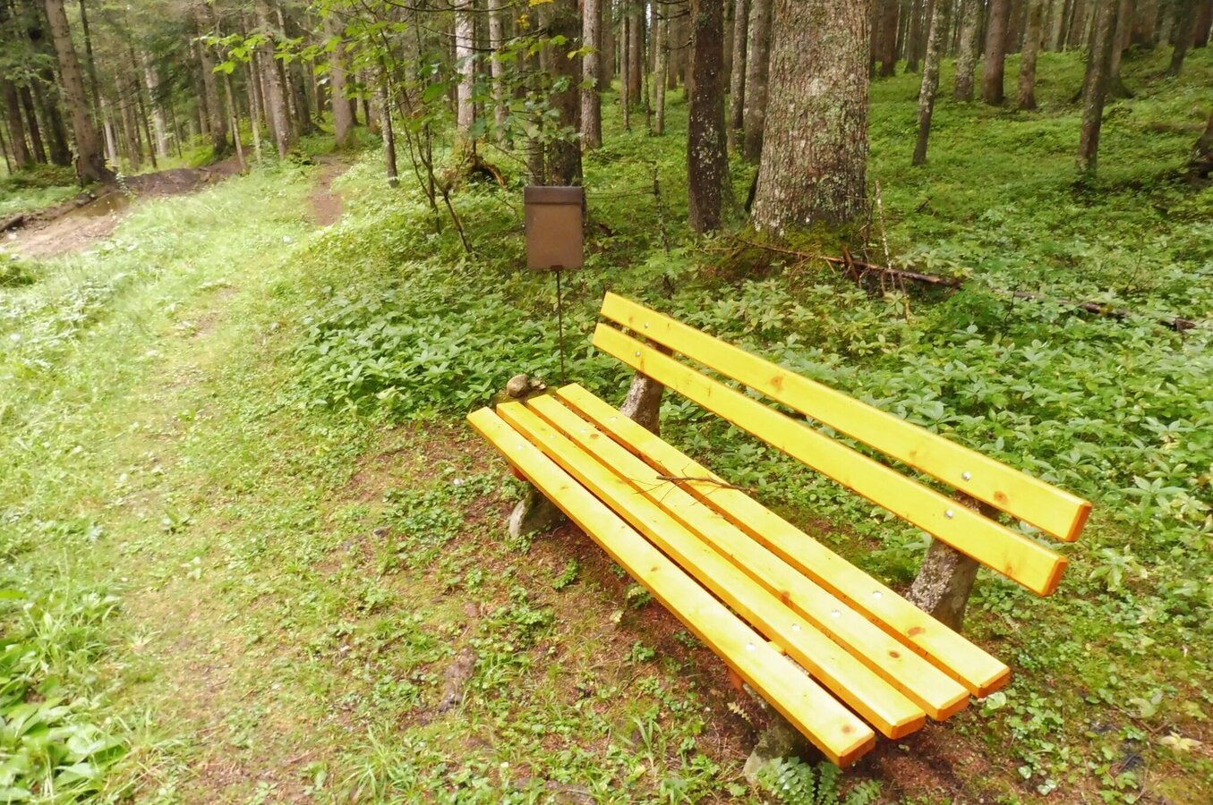 In serpentines a narrow path leads uphill for about 20 meters. Without any significant ascents and descents, you hike through a mixed forest. Again and again, benches invite you to take a break.