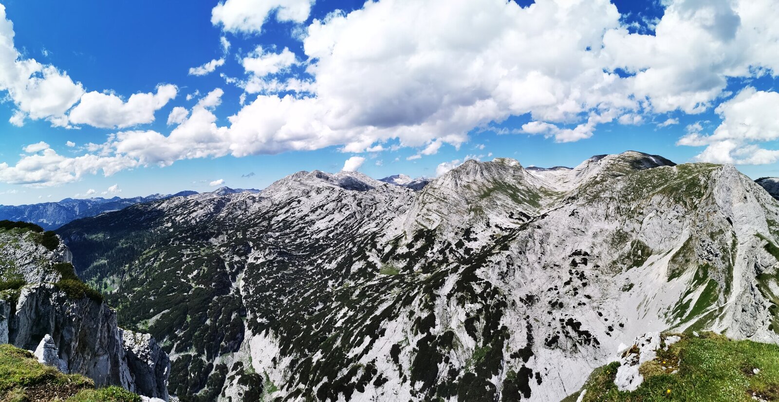 The trail continues over the Kampboden to the turn-off to the Almkogel. Now the path becomes steeper. The ascent to the summit is via the southern slope and takes around 1.5 hours from the junction. From the summit cross at 2,116 meters, there is a breathtaking view of the surrounding hiking area in the Totes Gebirge and the surrounding mountains.