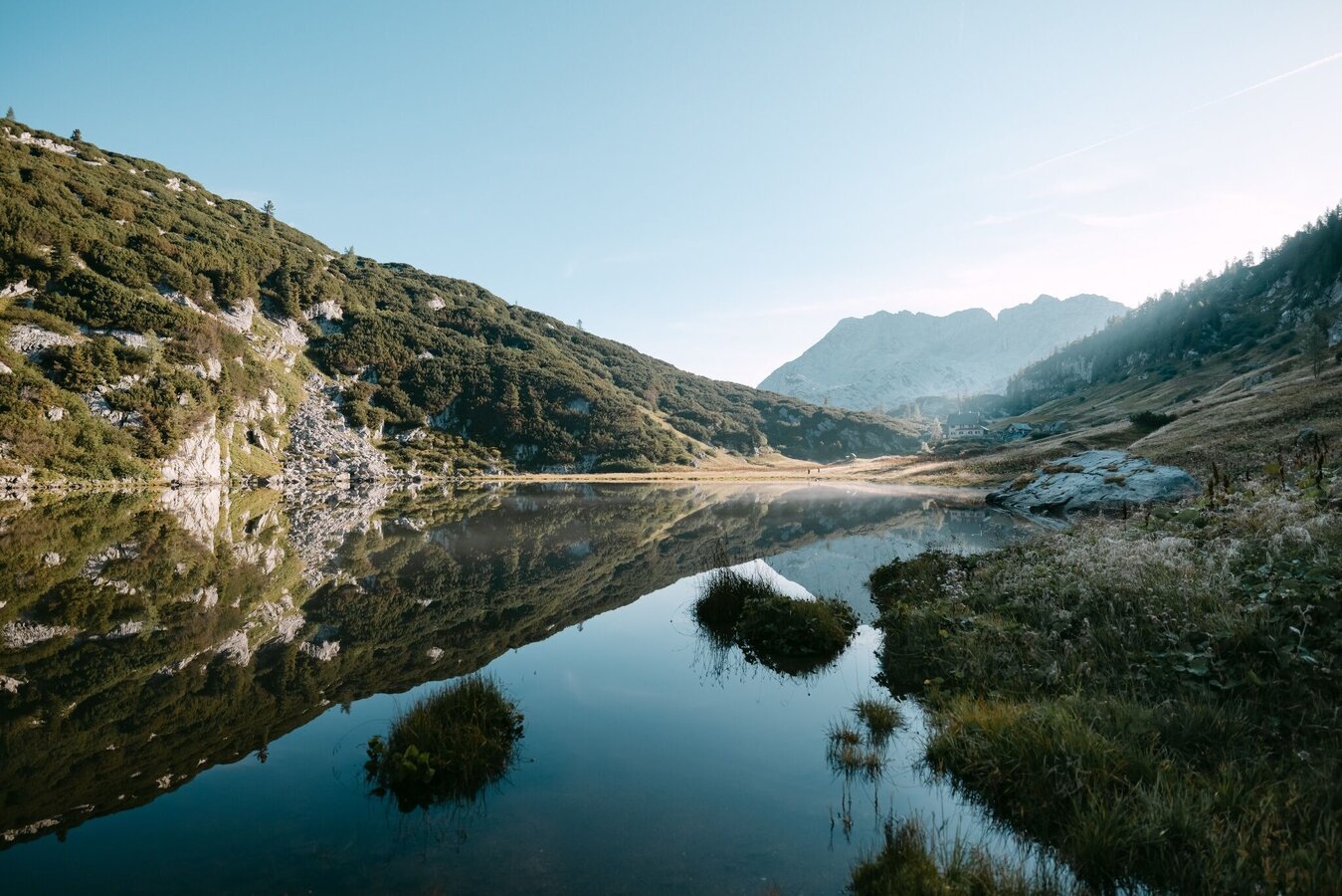 A particularly impressive point is the Draußengatterl, a narrow passage with vertical rock faces. A wire rope safety device makes it easier to pass this sometimes slippery passage. The trail then crosses a gravel giant, the Lahngang, and continues over the Schafbichl up to the Vorderer Lahngangsee at 1,500 meters above sea level.